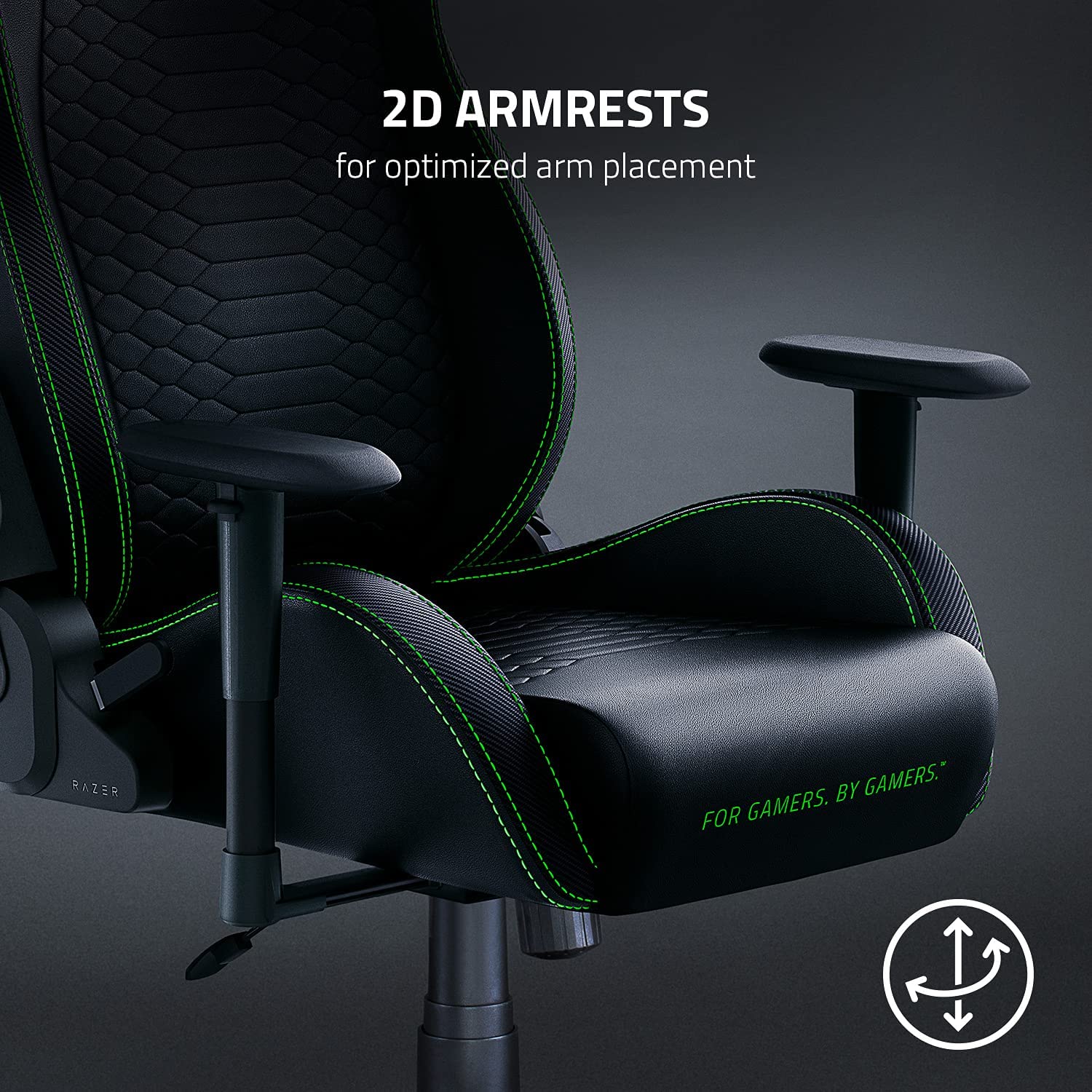 - 2D Armrests: The Razer Iskur X’s armrests can be adjusted by height and rotated inwards or outwards, so your arms will always be in a natural, relaxed position when gaming