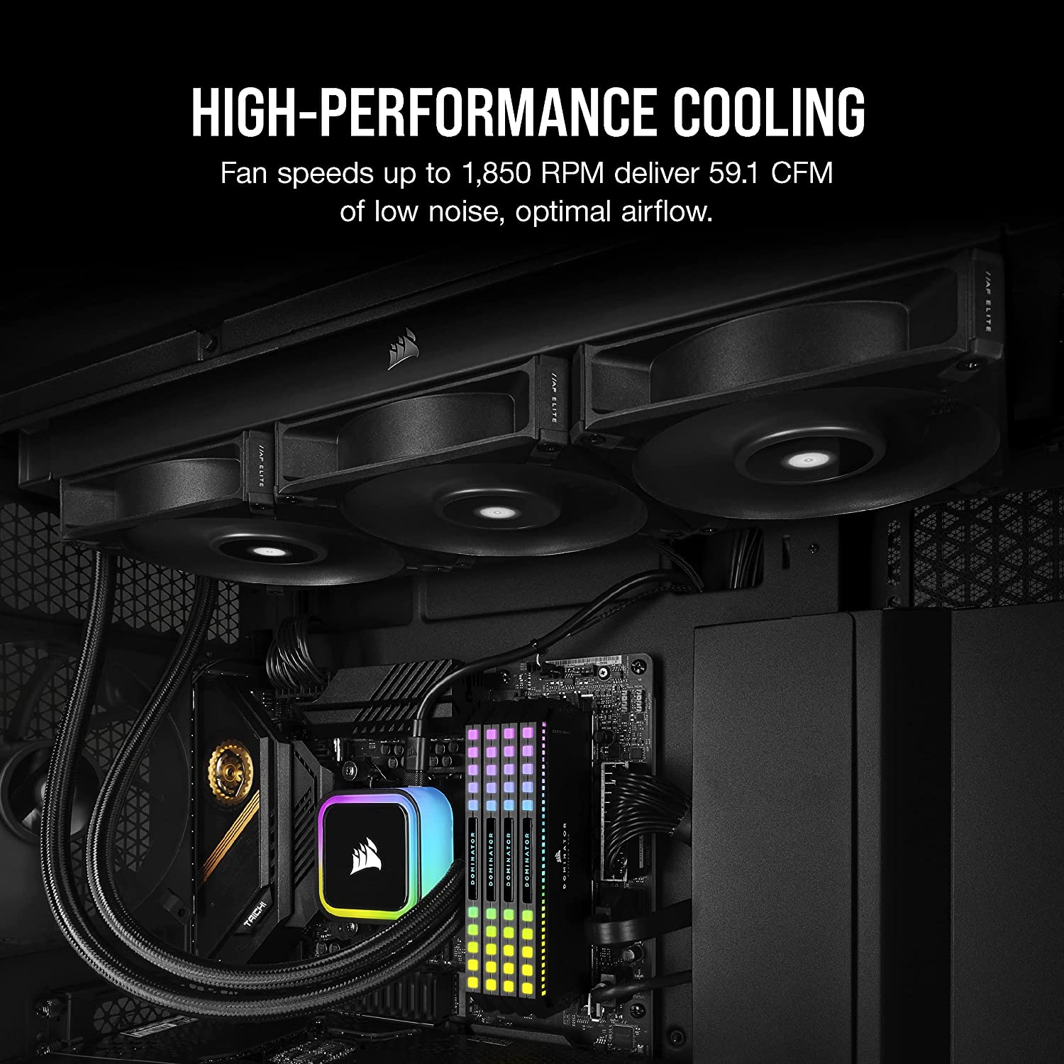- CORSAIR AirGuide Technology: Utilizes anti-vortex vanes to channel concentrated airflow and improve cooling, whether used as intake, exhaust, or mounted to a liquid cooling radiator or heatsink.
