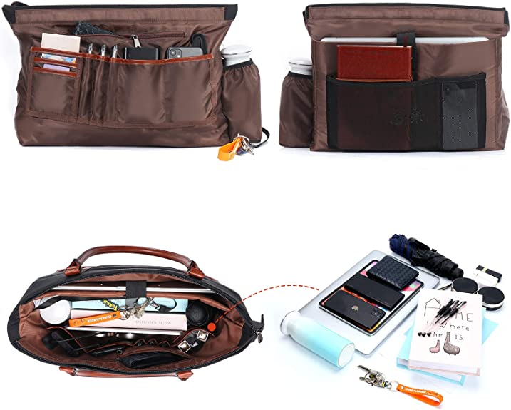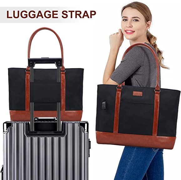 - Easy to carry: 15.6 in Tote bags for women,has three ways to carry this laptop bag: tote bag, shoulder bag, the special strap design on the back can make it fixed on the suitcase, and the soft round leather shoulder strap makes it more comfortable to carry.With back strap,you can Insert the bag in luggage,which is convenient to carry on for travelling and business. It will release the stress from your hand.