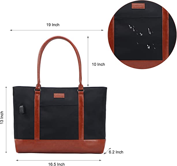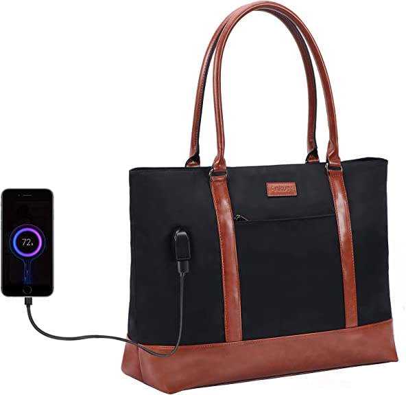 - USB Charging Tote Bag: Stylish laptop bags for women,Size: 16.5"L x 6.2"W x 13"H, handle drop: 10".External USB port with set-in charging cable offers convenient charging your cellphone. Keep to have enough power in your phone for daily, travel and business.