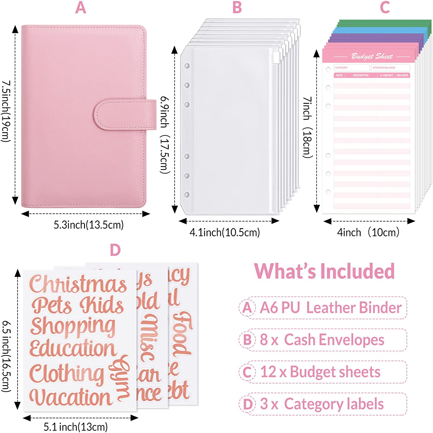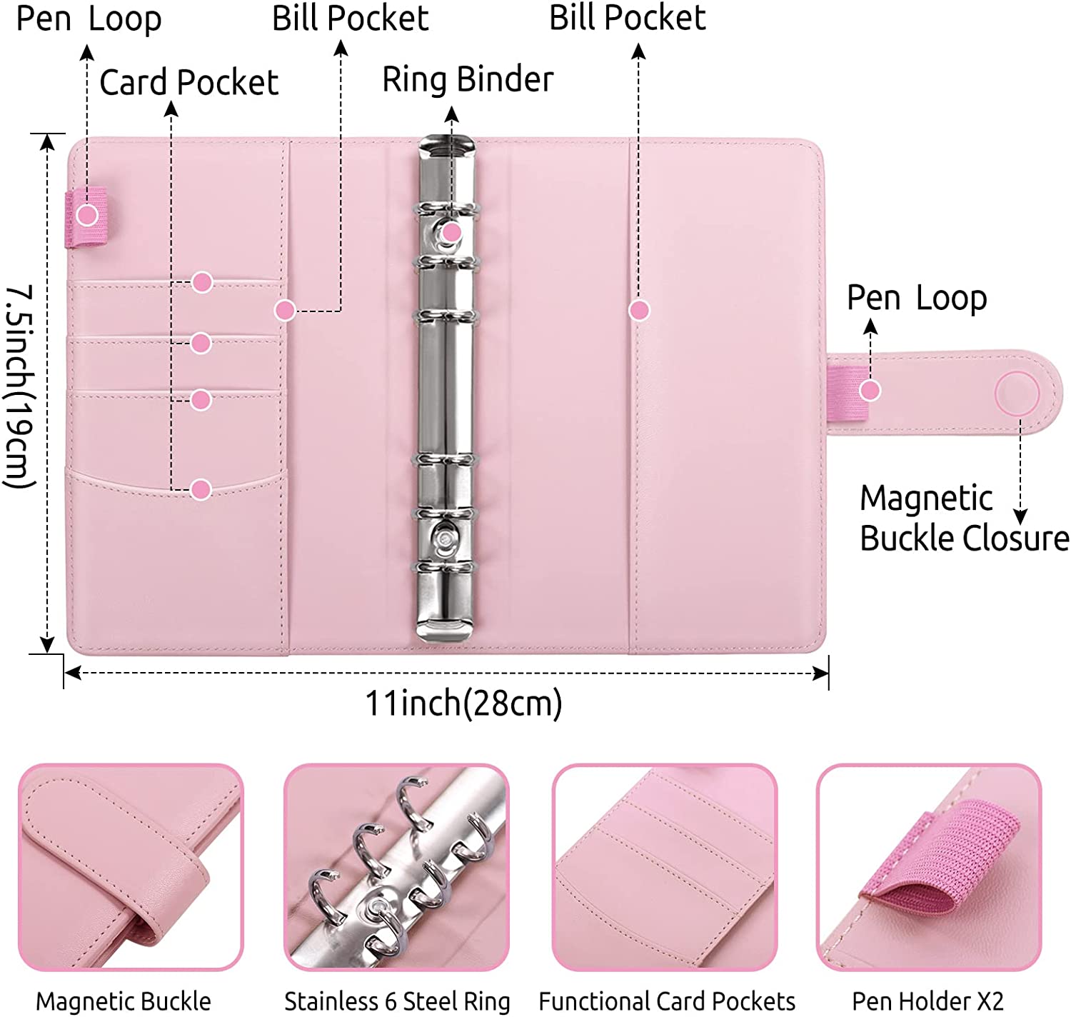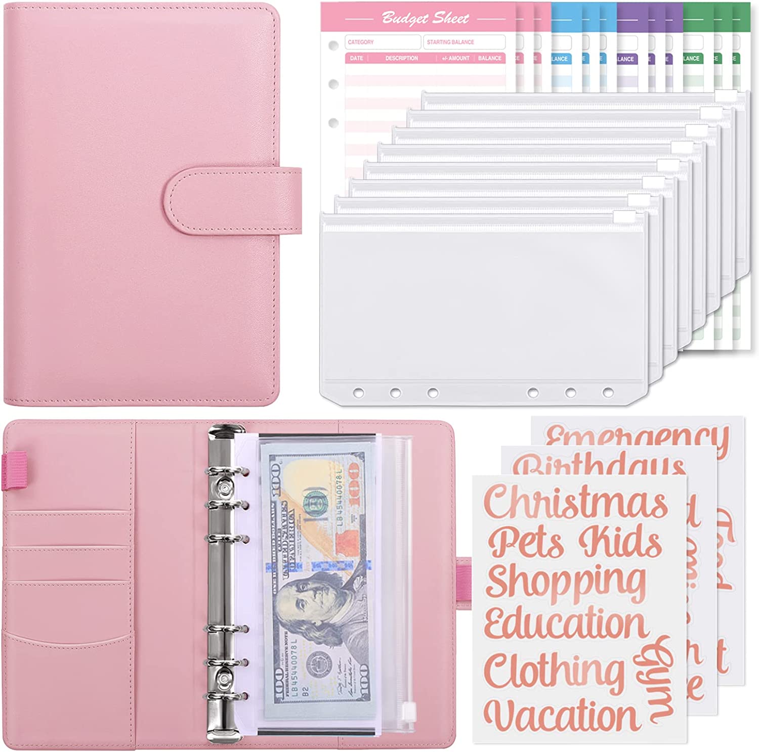 SKYDUE Budget Binder with 8pcs Zipper Envelopes - Pink
