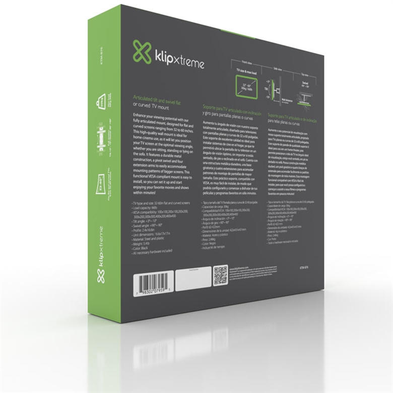 Klip Xtreme KTM-876 - Wall Mount TV Bracket - 32'' to 60''