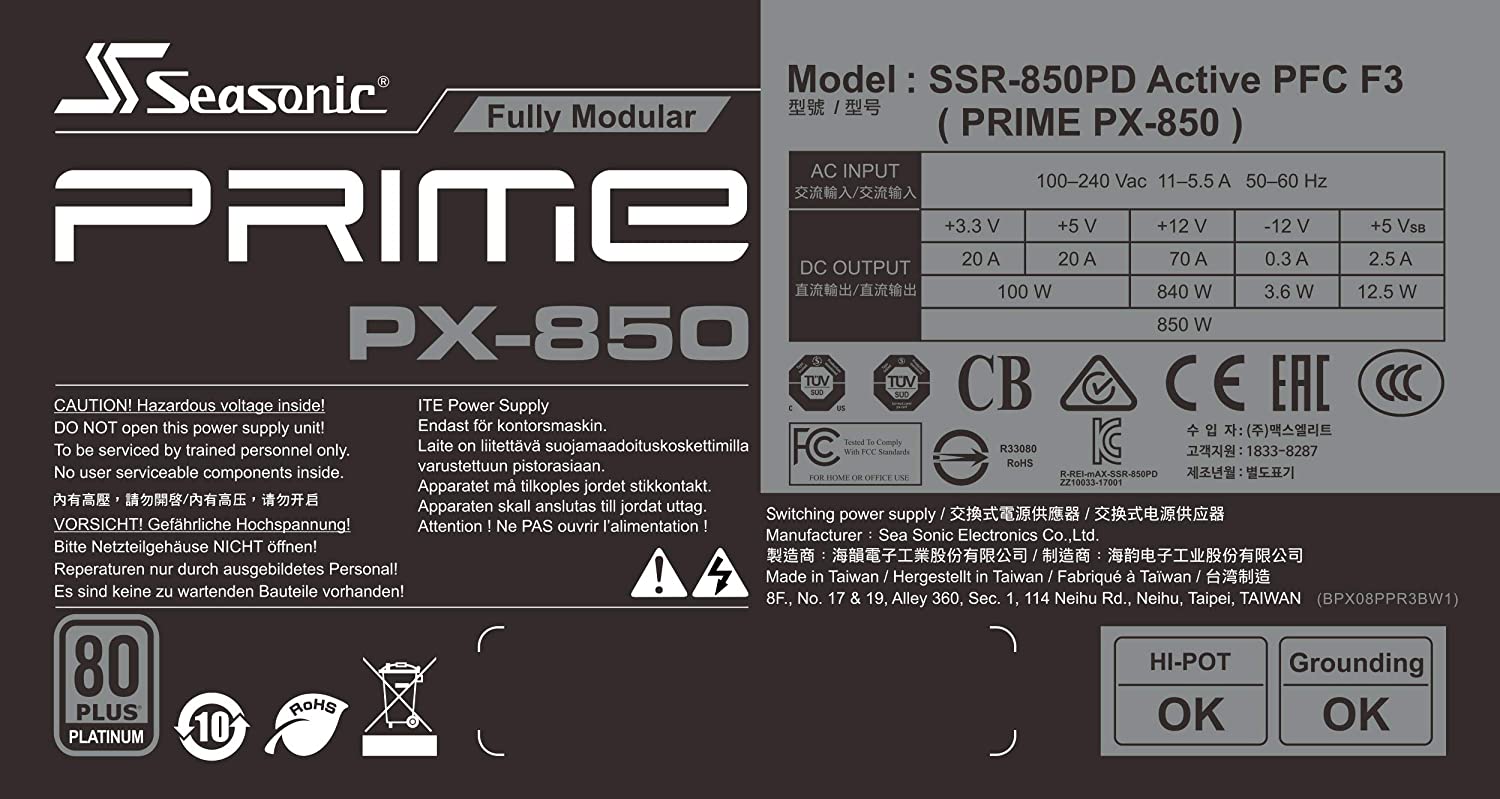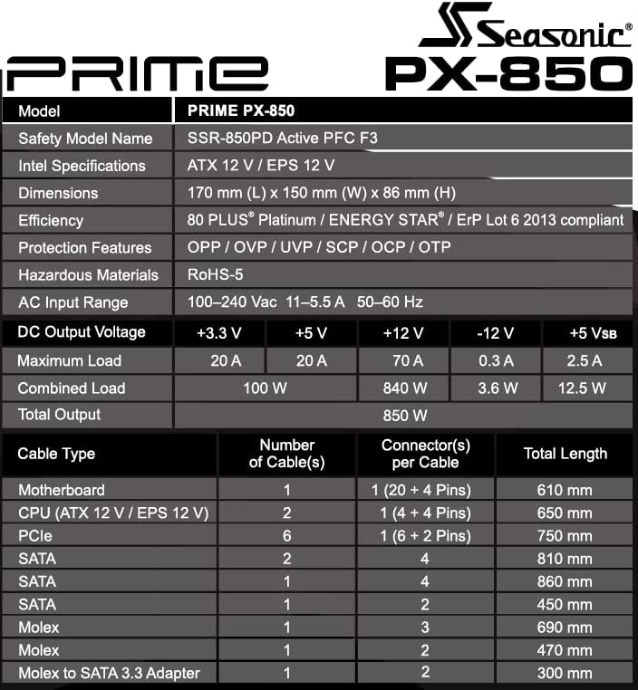 Seasonic Prime PX-850, 850W 80+ Platinum - Full Modular