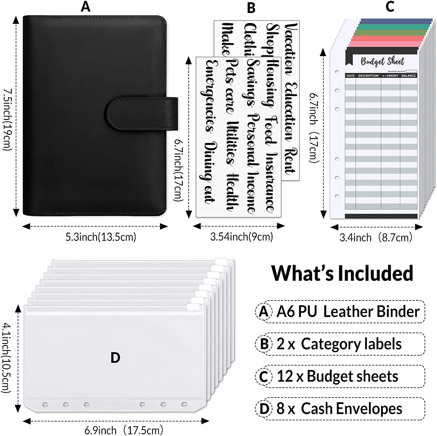 saving binder,8pcs A6 6-holes binder pockets,12pcs expense budget sheets,2