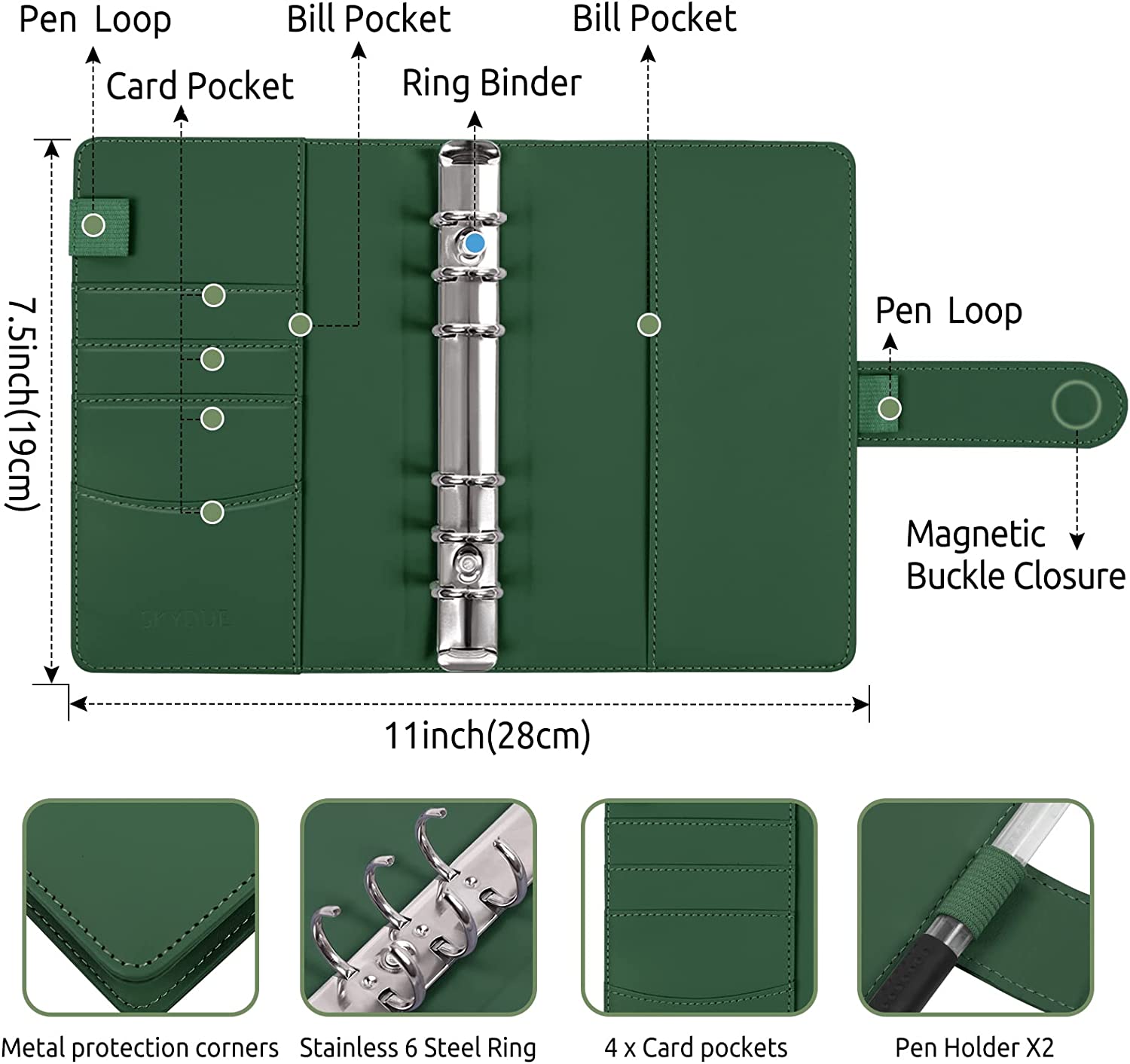 SKYDUE Budget Binder with Cash Envelopes & Expense Budget Sheets - Dark Green