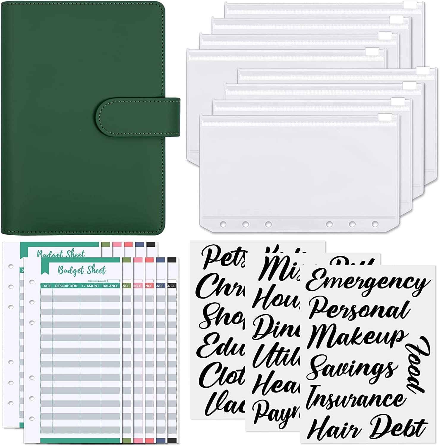 saving binder,8pcs A6 6-holes binder pockets,12pcs expense budget sheets,2