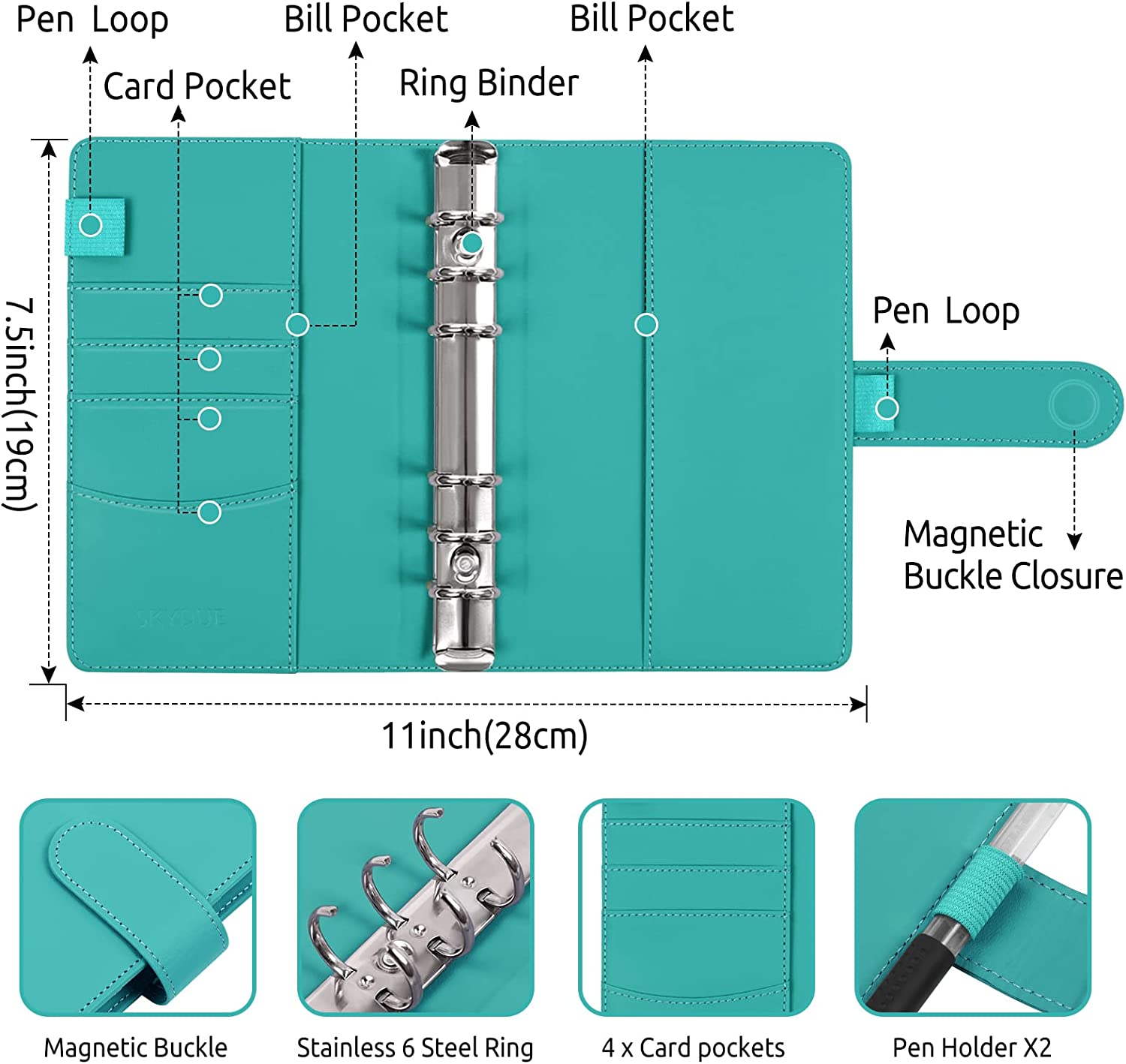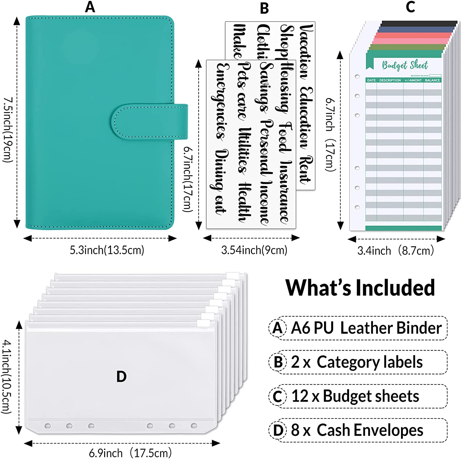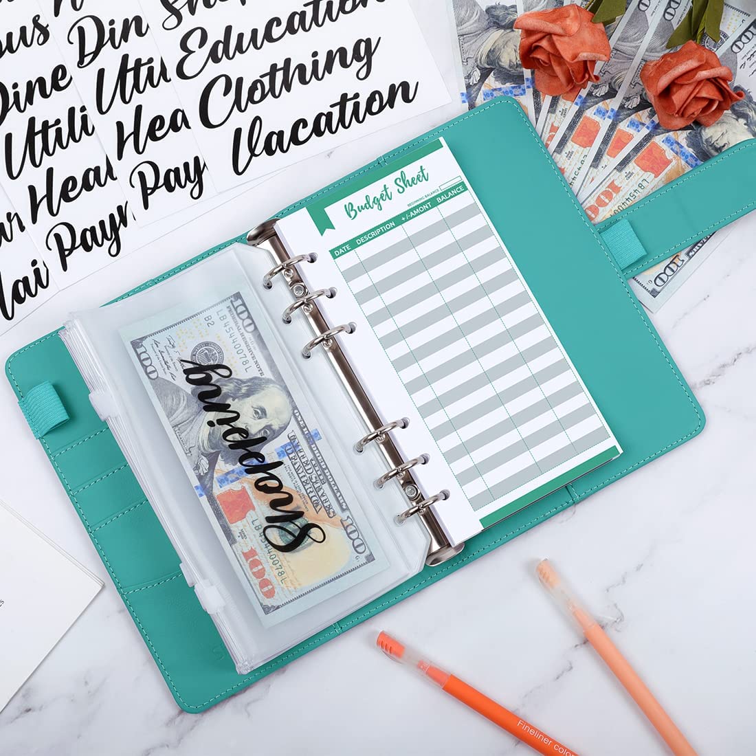 SKYDUE Budget Binder with Cash Envelopes & Expense Budget Sheets - Turquoise