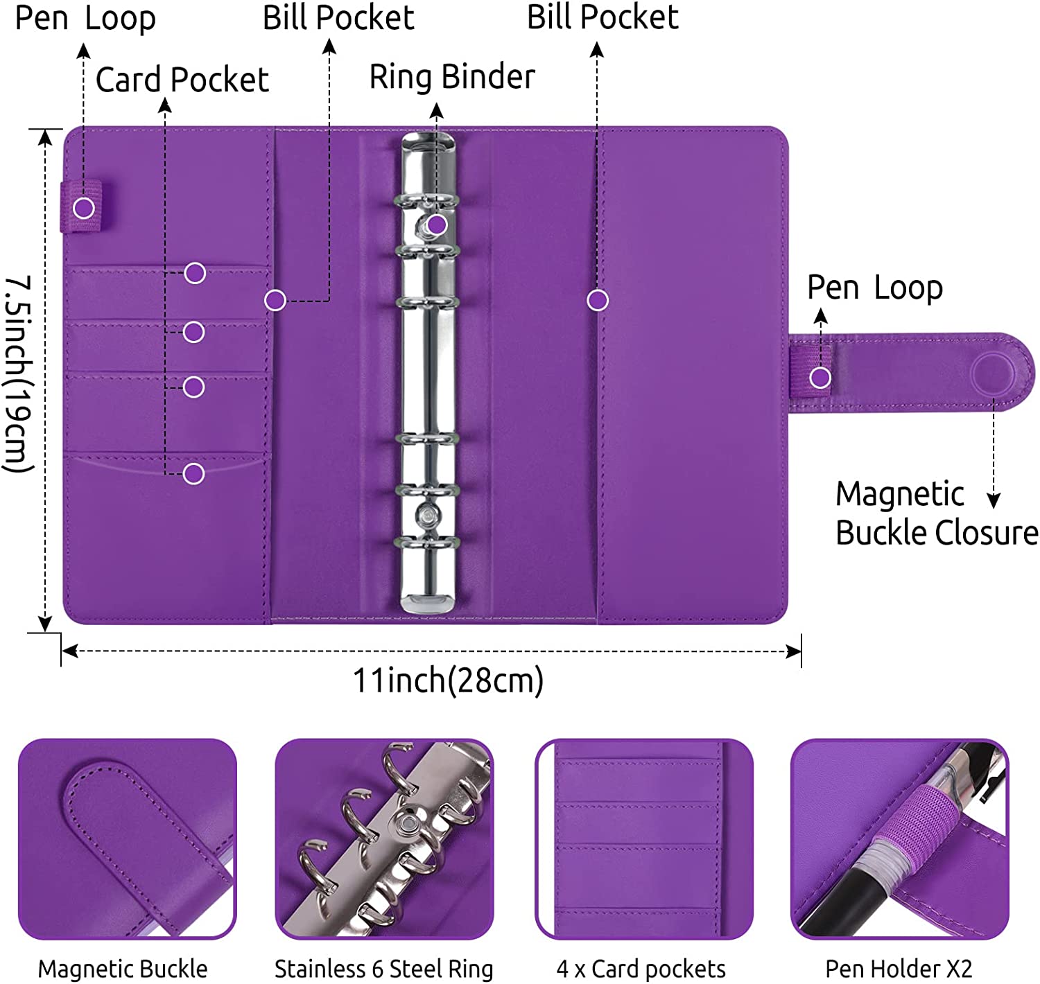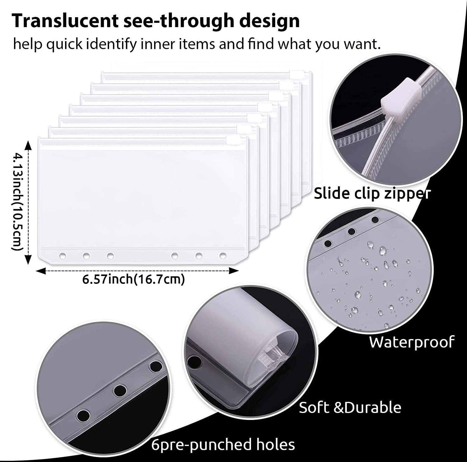 Pockets: 8PCS A6 zipper cash
