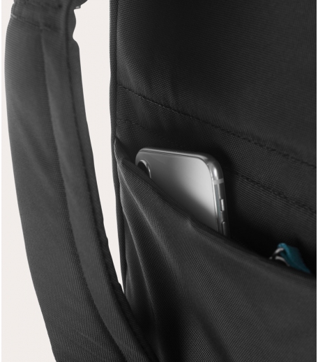 a double internal pocket with a neoprene flap, a roomy safety pocket on the