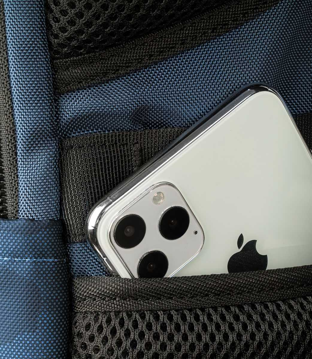 for tablets and laptops, two roomy front pockets of different heights, as well