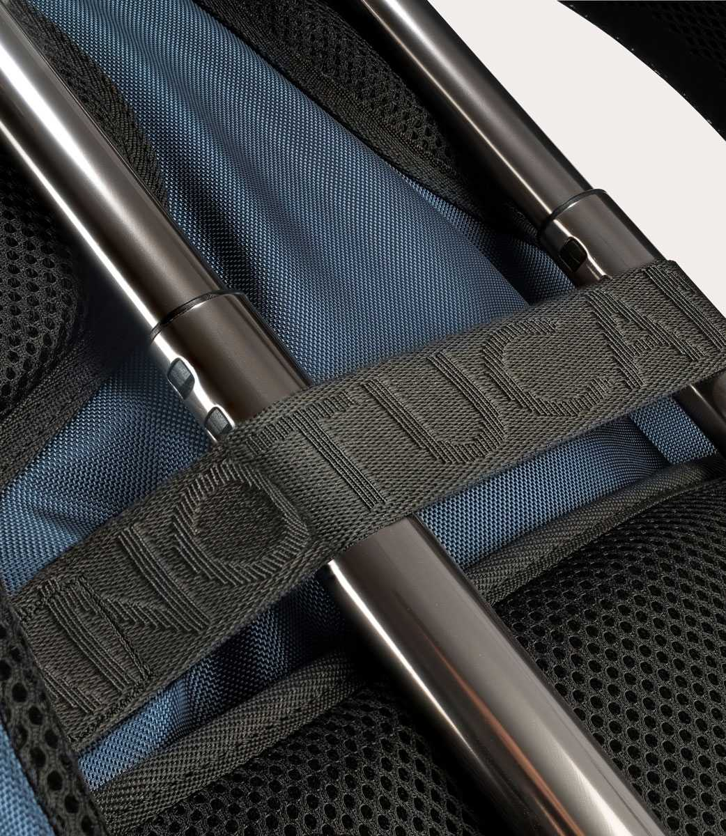 ergonomic and features adjustable, padded shoulder straps, a trolley strap, and