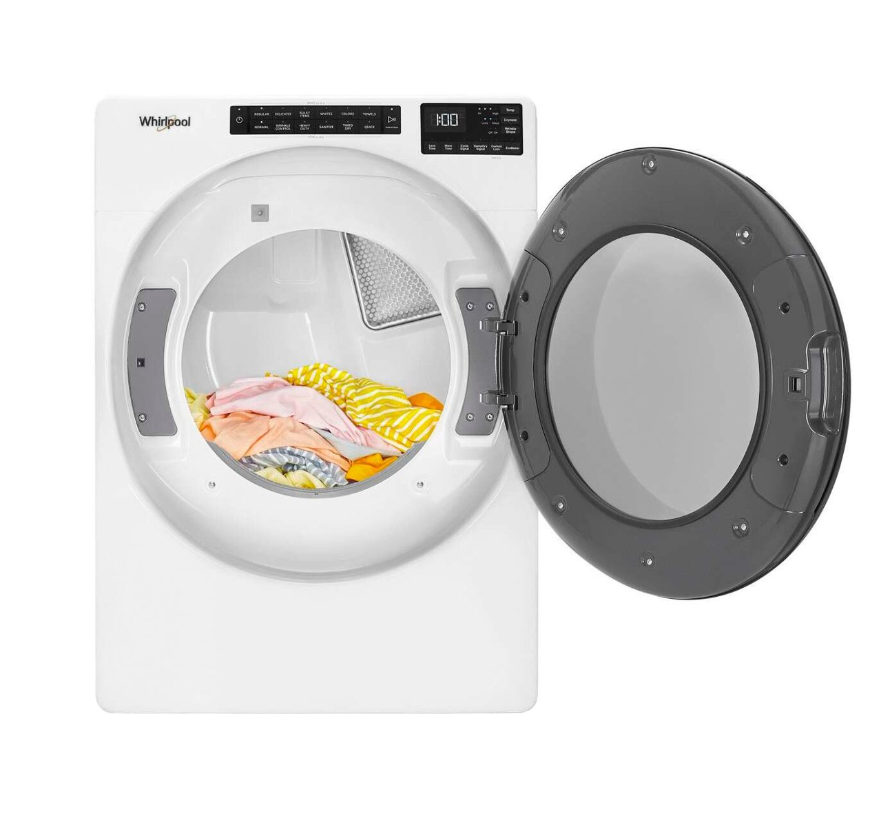 - Help keep wrinkles from setting into clean, dry fabrics with the Wrinkle Shield option. It keeps clothes tumbling for up to 150 minutes after the cycle ends or until you open the door.