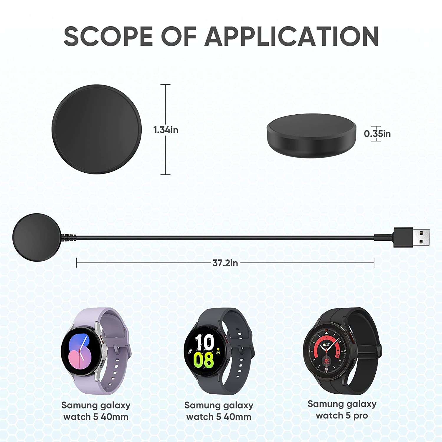 - The package includes a 3.3ft Charger Cables for Samsung Galaxy watch 5 series