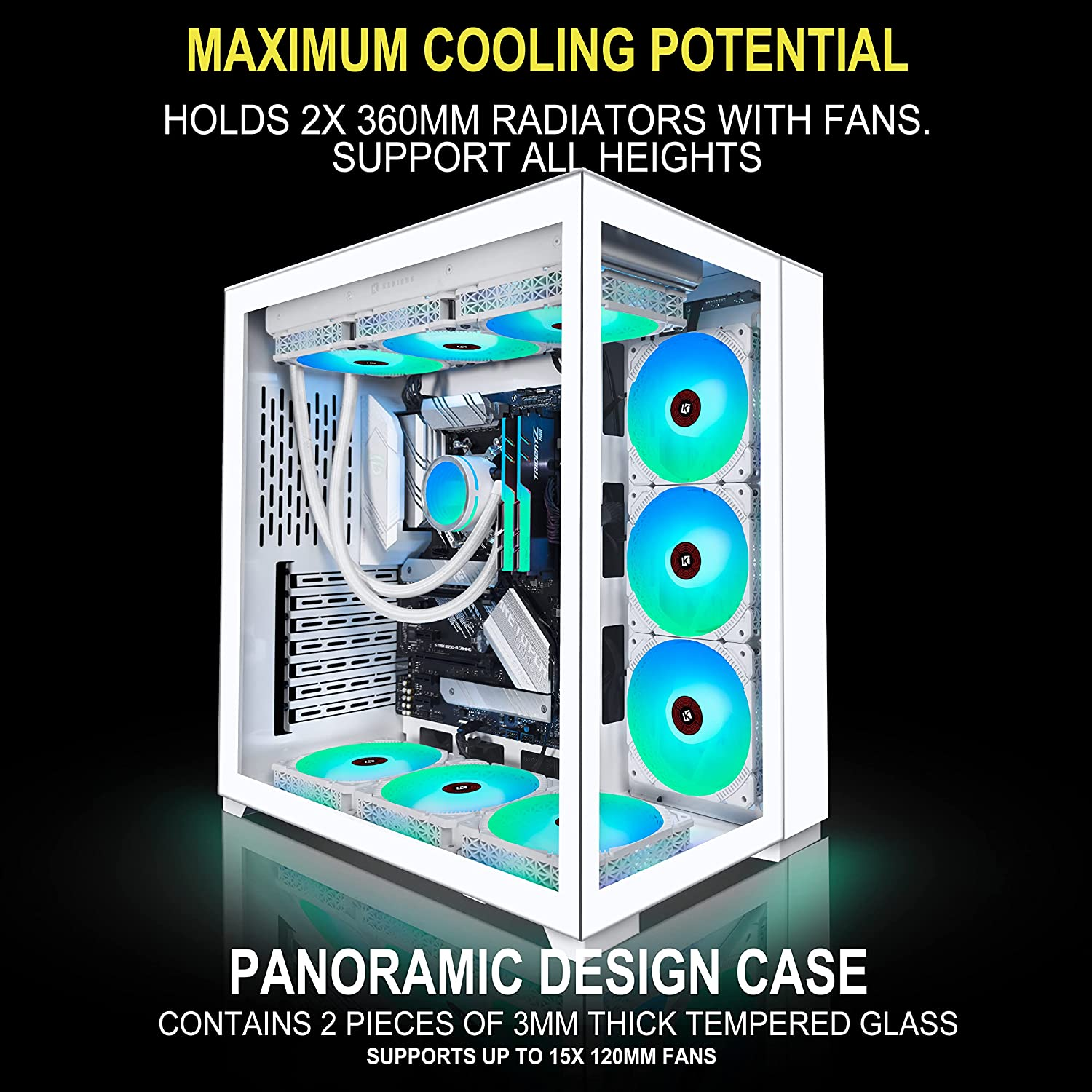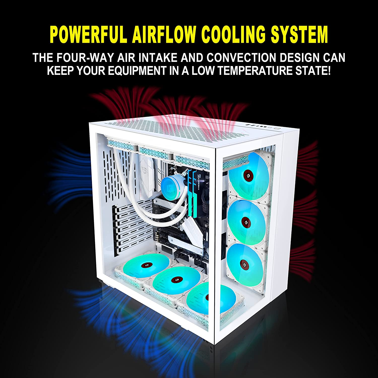 - [9 Pre-Installed 120mm ARGB Fans]-- Suitable for enhanced cooling. With the pre-installed ARGB controller you can sync it with the motherboard, each addressable ARGB fan offers 16.8 million colors for exceptional customizable lighting. You don't need to pay extra for fans. Only when the 5V-3PIN cable on the control board is connected to the motherboard can the ARGB light synchronization be realized.