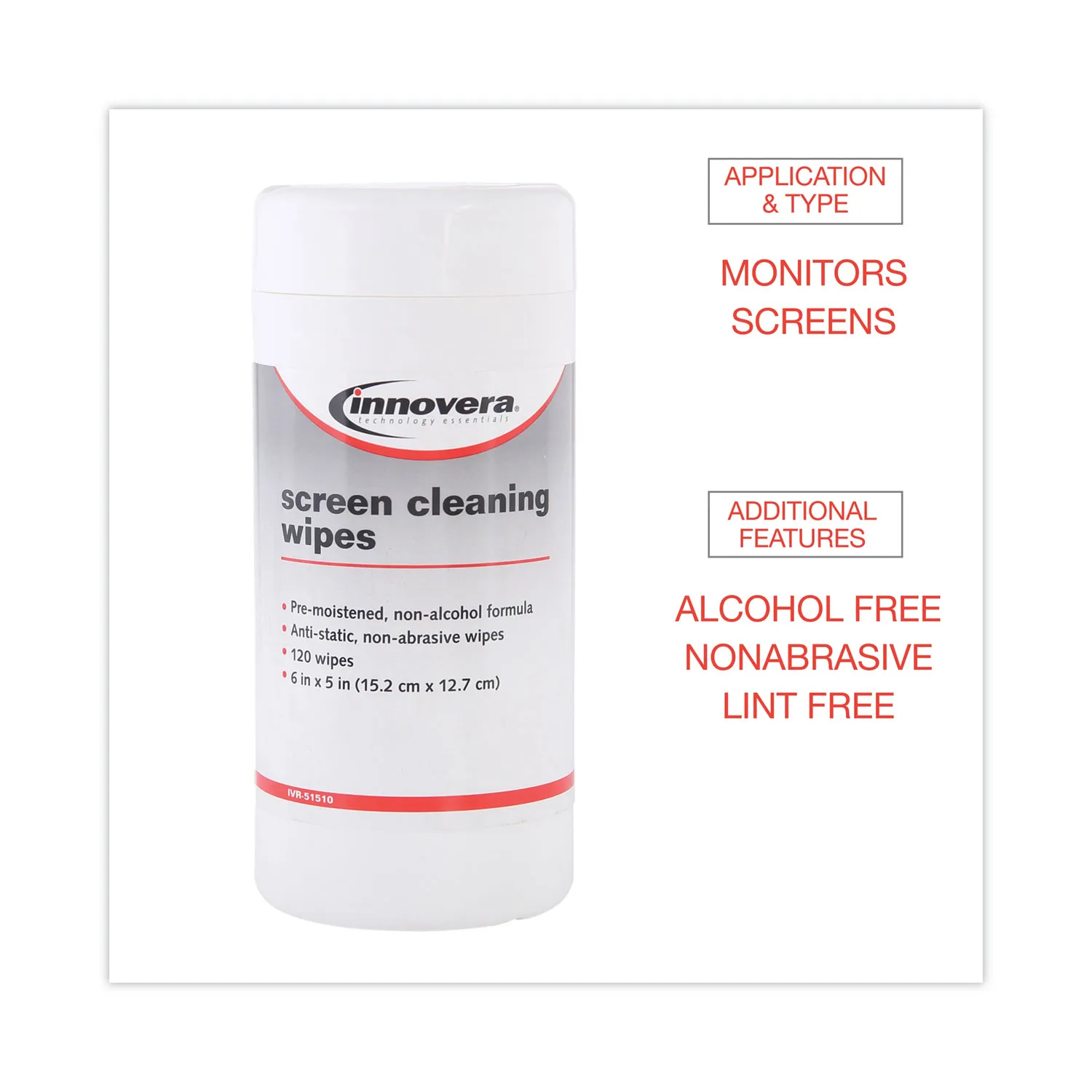 Innovera Antistatic Screen Cleaning Wipes in Pop-Up Tub - Unscented, 120/Pack (Alcohol-Free)
