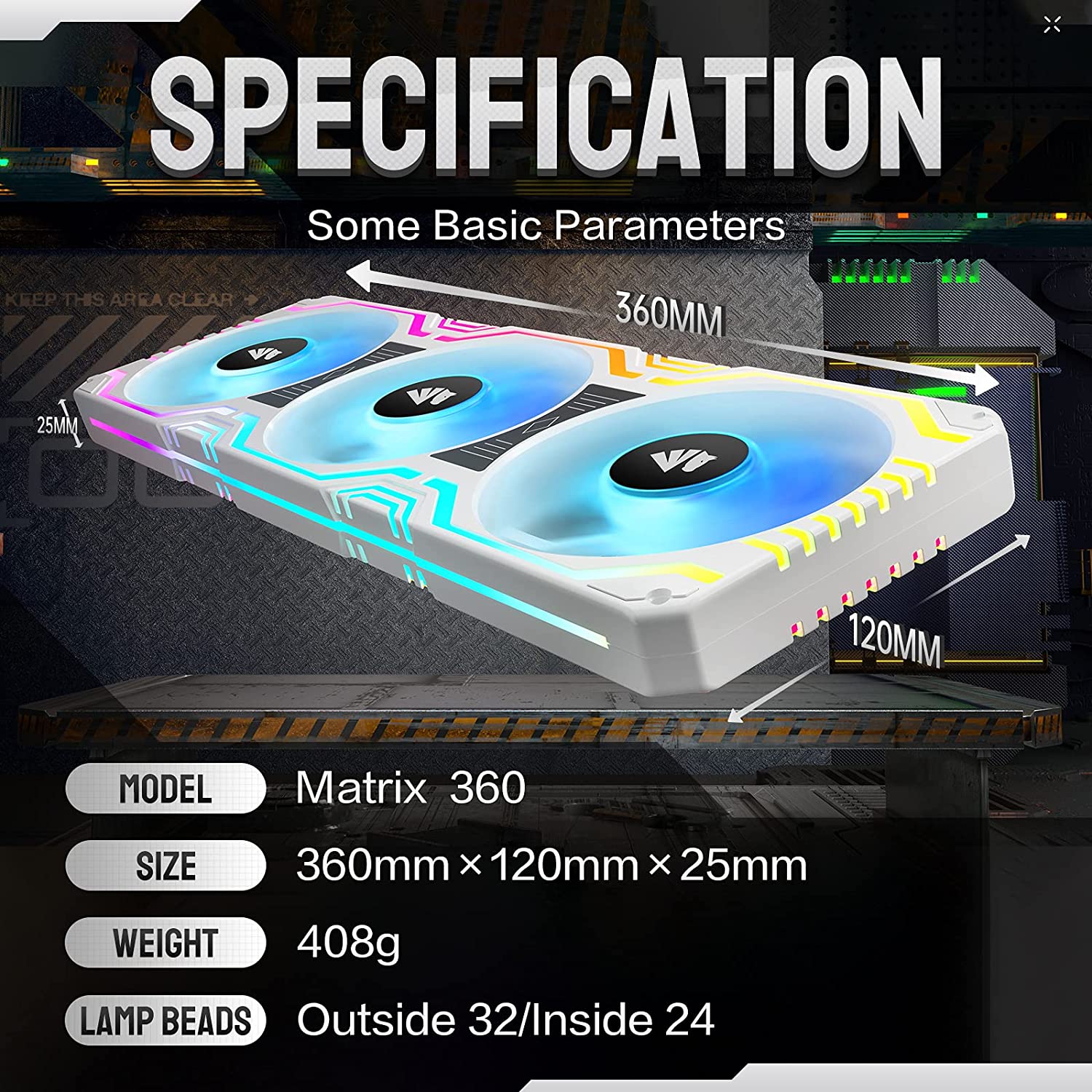 Asiahorse Matrix White RGB LEDs 360MM All-In-One Square Frame Integrated Fan (With MB Sync/Analog Controller)