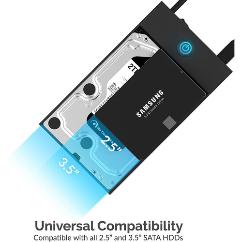 Quickly convert your internal 3.5" or 2.5" SATA hard drive to a portable external storage device with the Sabrent 3.5" / 2.5" SATA to USB 3.0 Tool-Free External Drive Enclosure. Designed for fast and easy use, you can quickly install and change out drives without the hassle of looking for a screwdriver or other tool. Simply slide your separately purchased SATA compatible drive into the enclosure's disk tray, making sure that the connectors fit snugly, then put the cover back on. That's it. Plug the included power adapter into the device and wall outlet to power up the device and use the USB cable to connect the enclosure to your compatible computer's USB 3.0 / USB 3.1 Gen 1 Type-A port to transfer data at up to 625 MB/s, depending on the speed of the drive. The enclosure is also backward compatible with USB 2.0 and 1.1 ports.