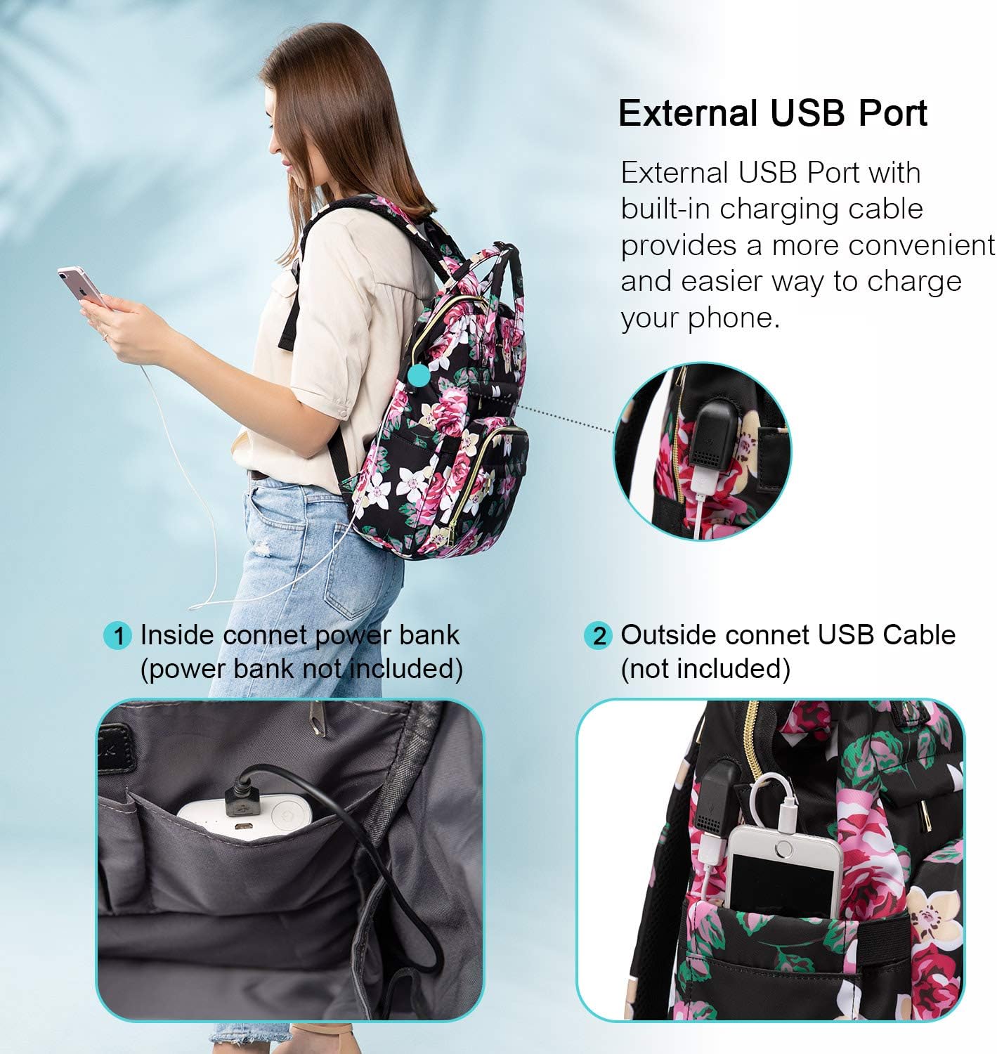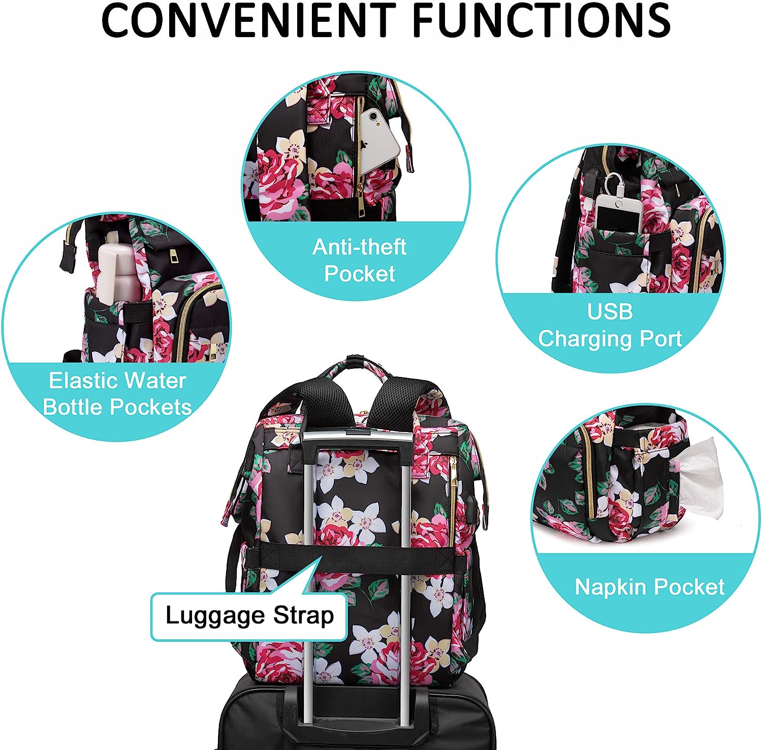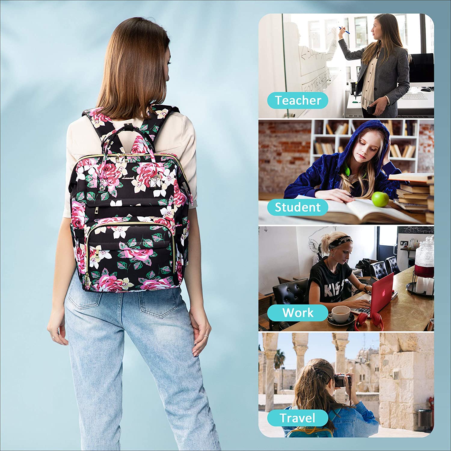 LOVEVOOK Laptop Backpack 15.6 Inch with USB Charging Port - Floral