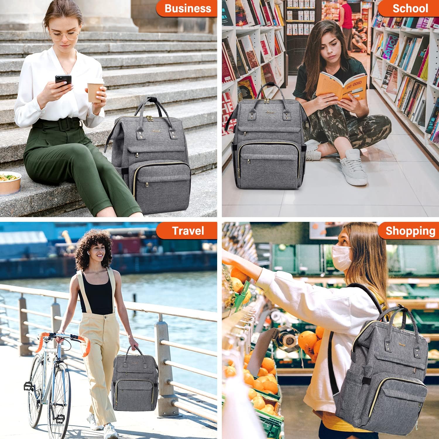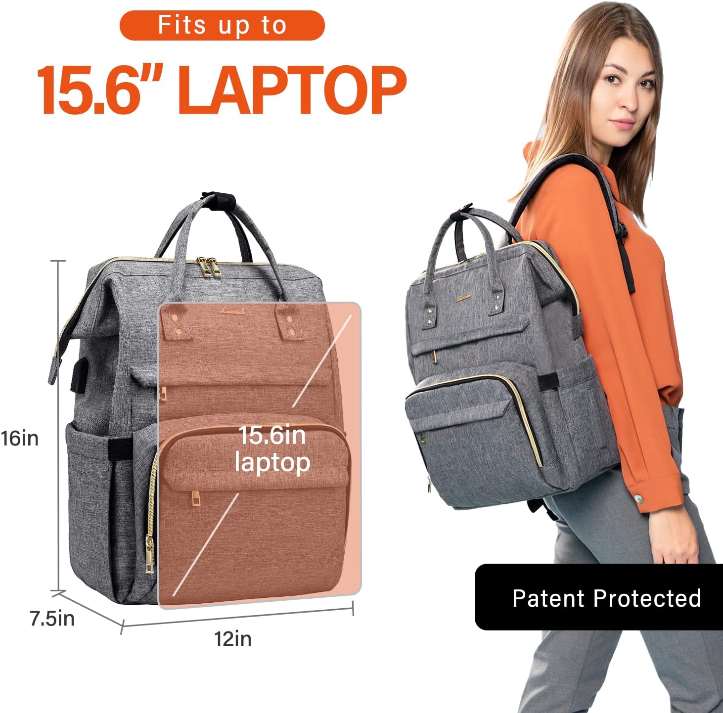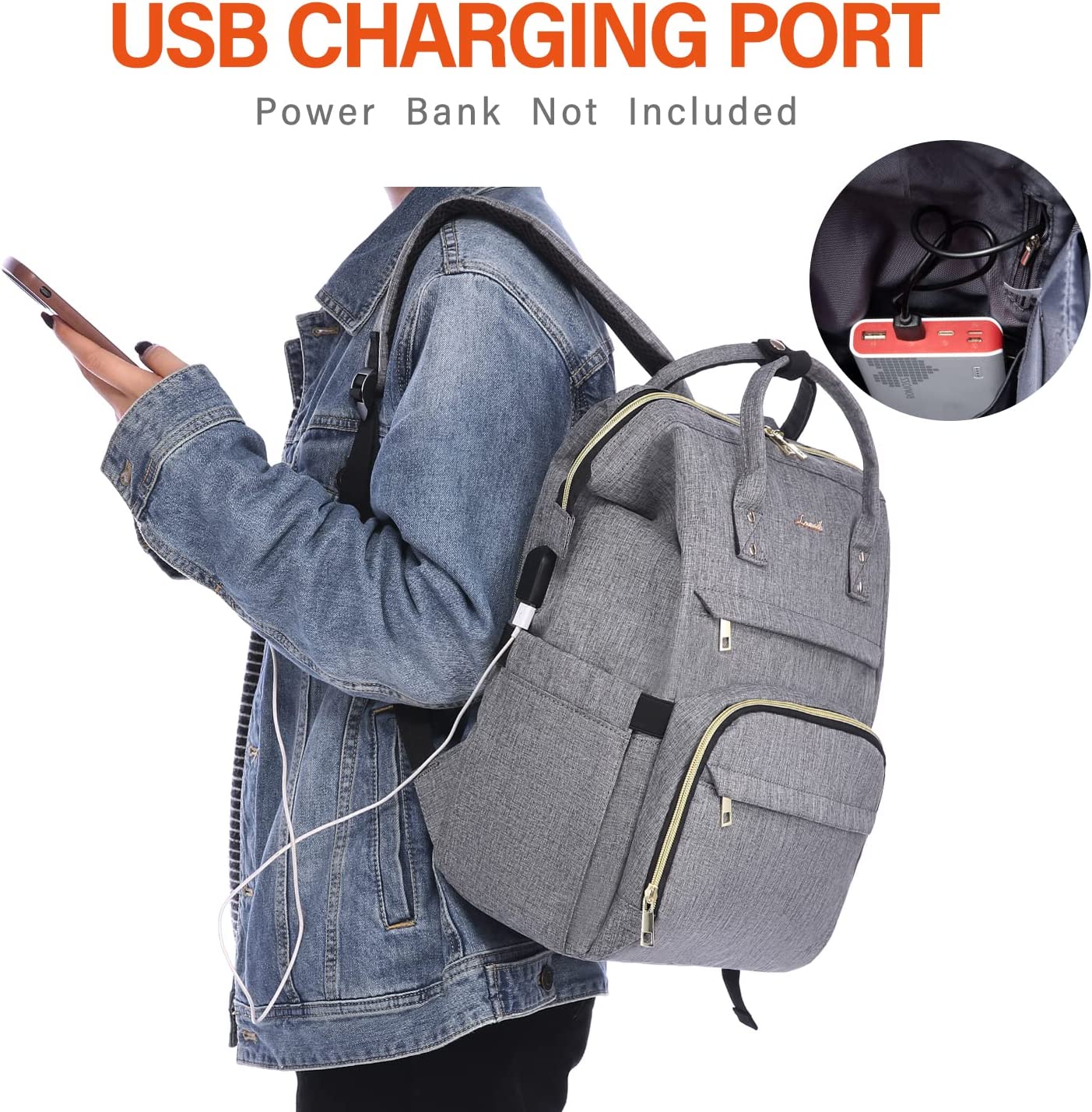 LOVEVOOK Laptop Backpack 15.6 Inch with USB Charging Port - Grey