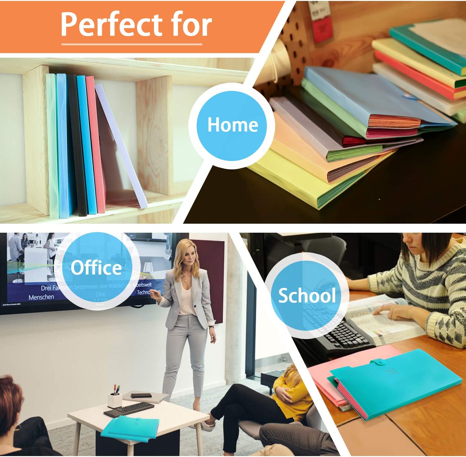 SKYDUE Letter & A4 Expanding File Folder Pockets Accordion Document Organizer - Sky Blue