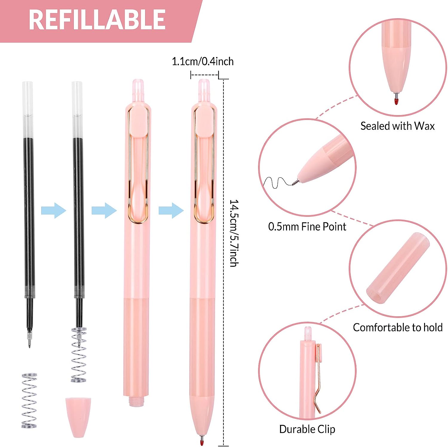 Necessary Supplies & Pretty Gift: Refillable long-lasting and durable gel ink pens can be used as