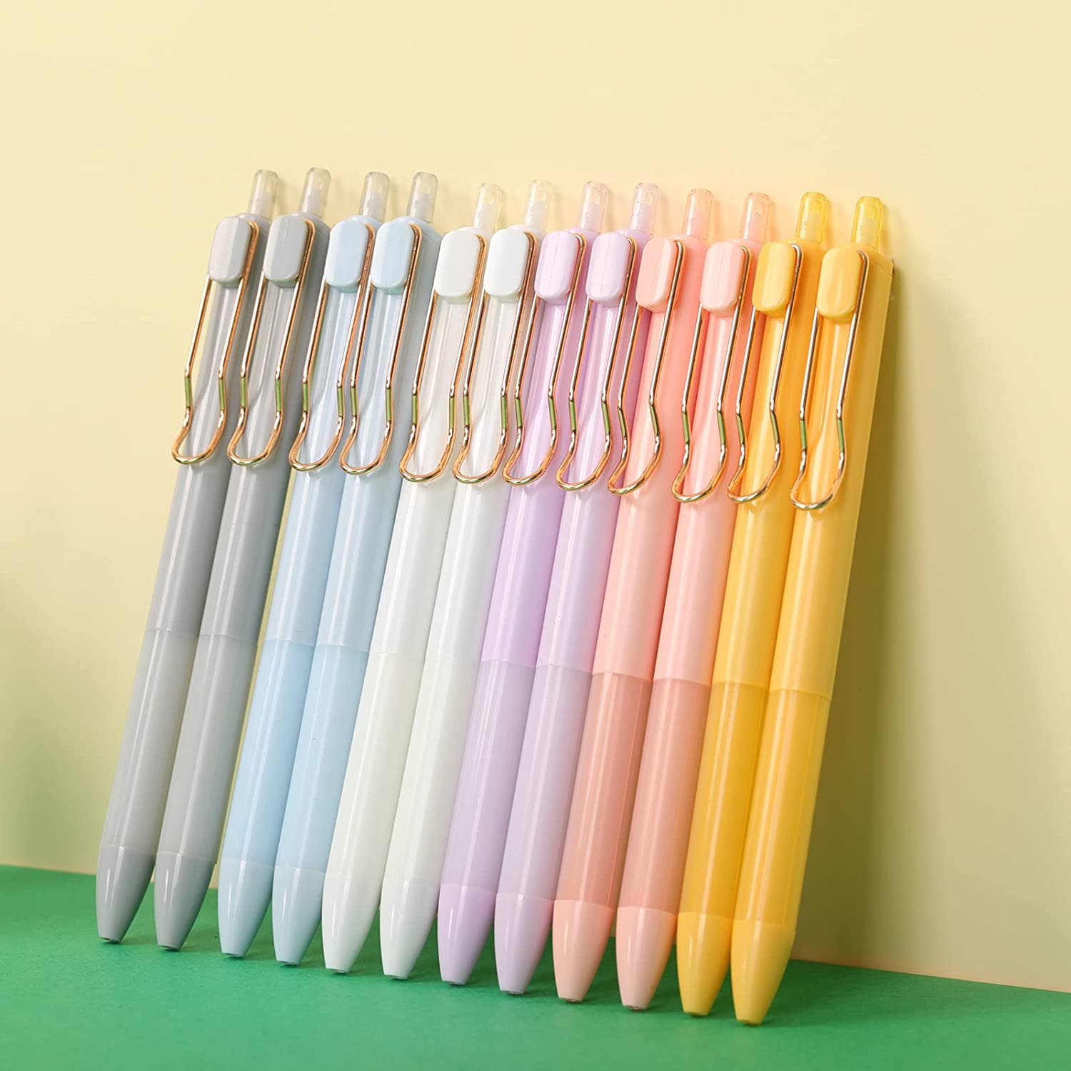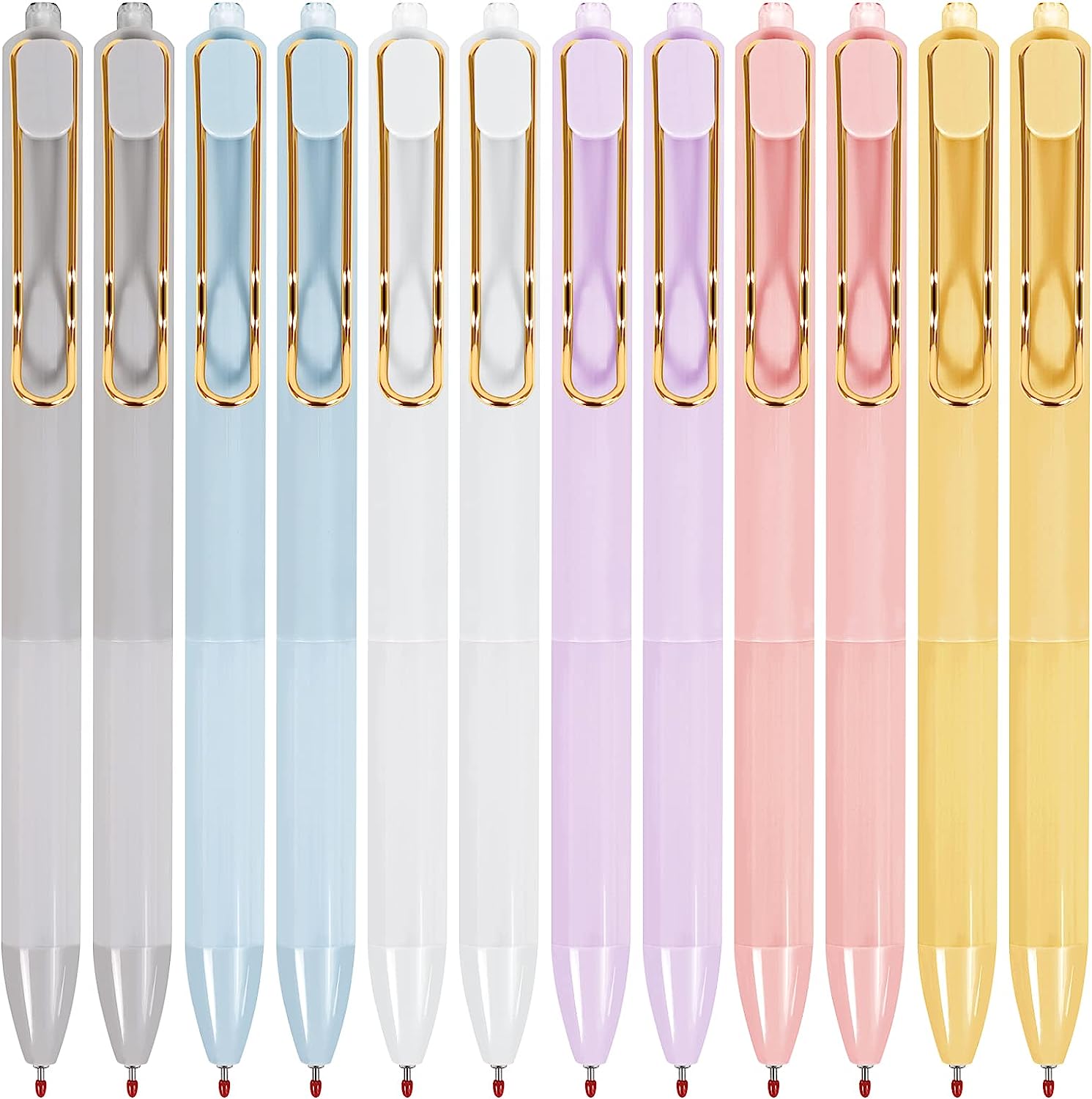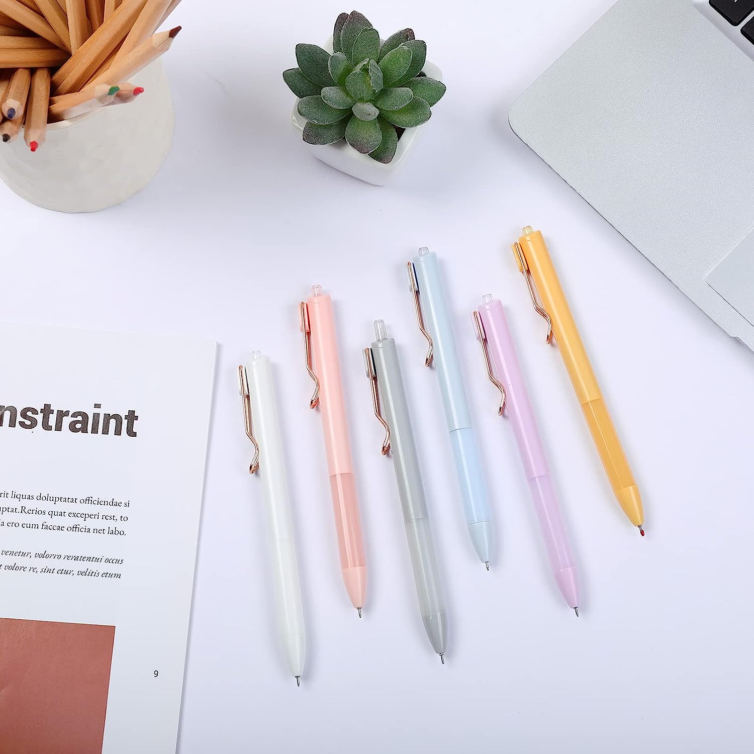 different colorful barrel (pink, yellow, blue, gray, purple, white) Retractable design allows click pens to open/close with just a