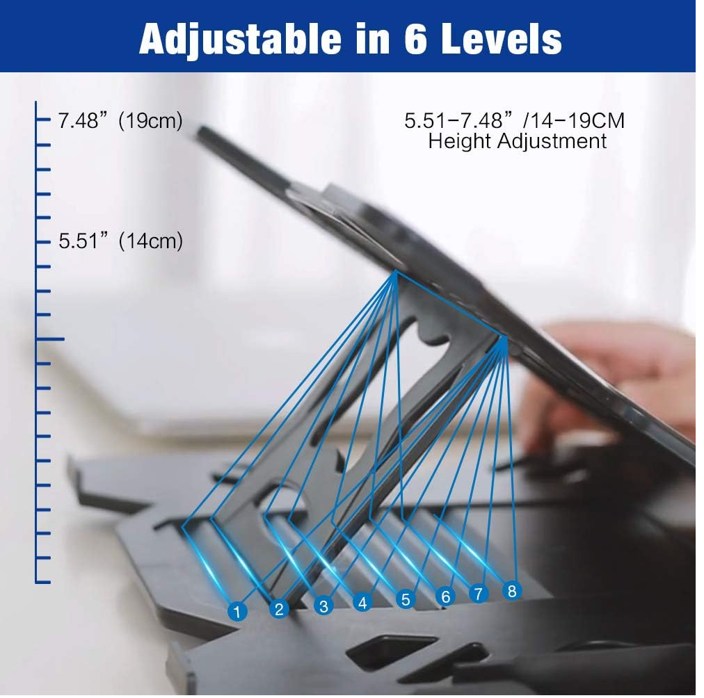 - Stable And Protective: This adjustable laptop stand is made of special plastic materials, it is sturdy, support up to 44 lbs(20kg), no worry any wobble at all; two holders designing on on the bottom part make your latop more stable, rubber pads on the top and bottom secure your laptop in place and prevent any scratches.