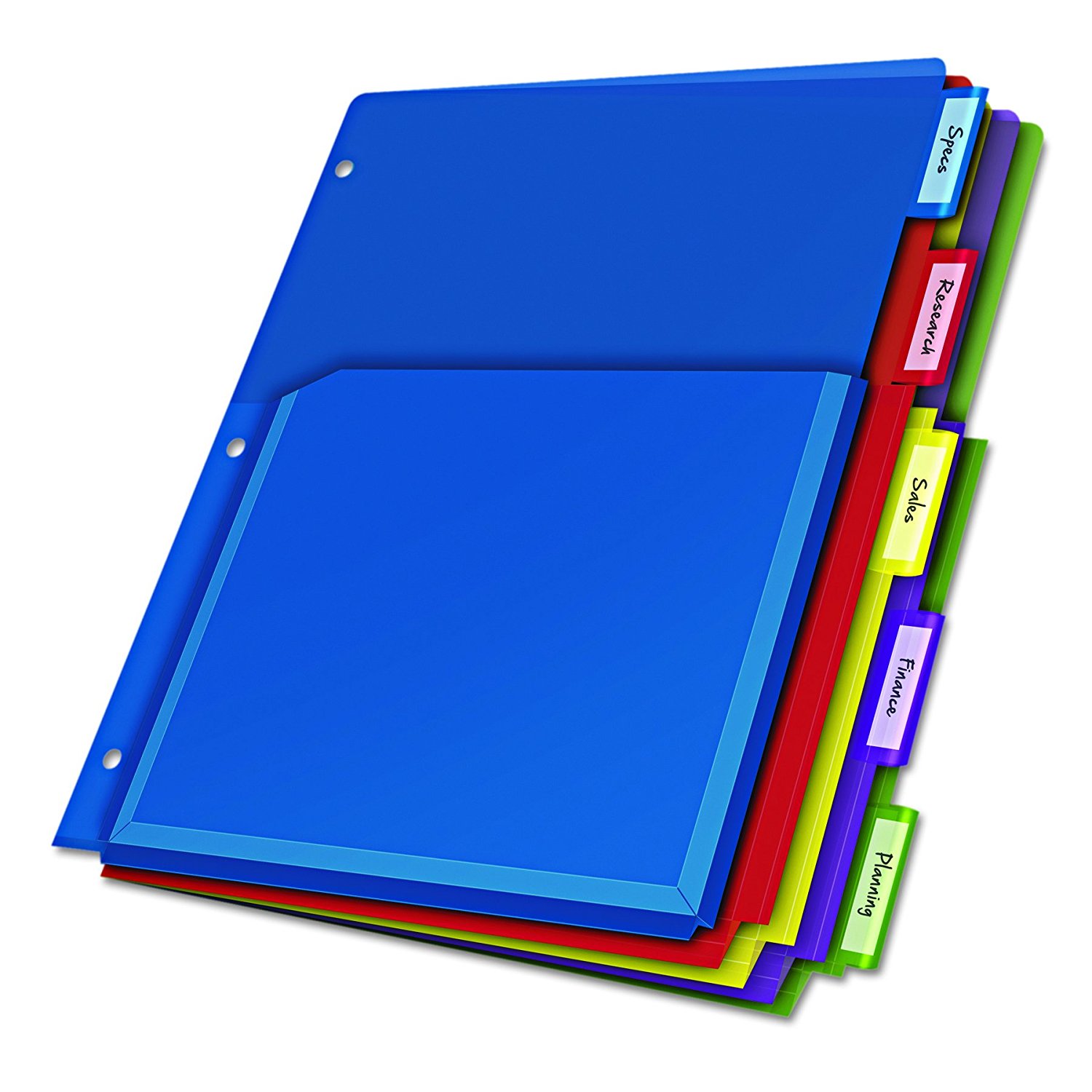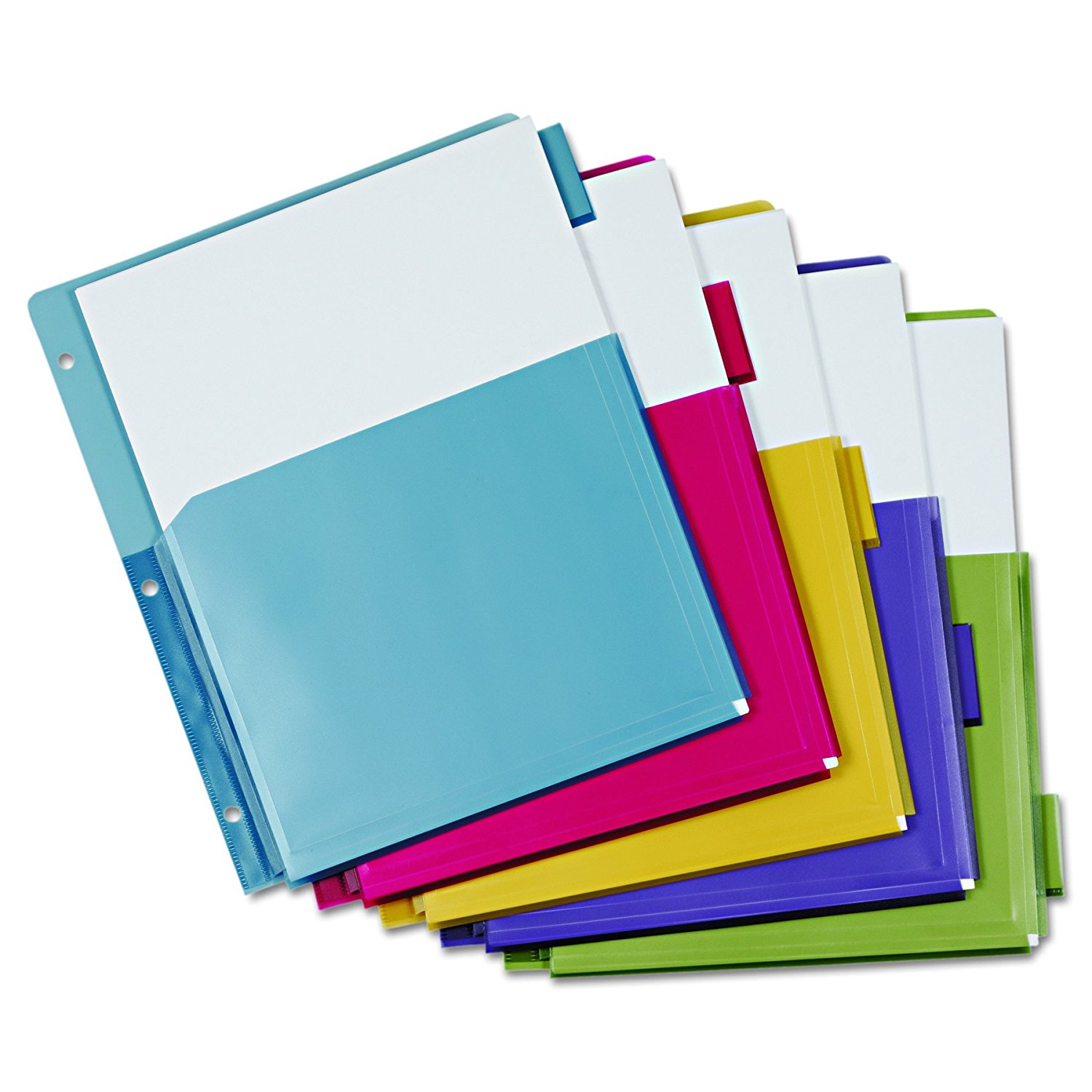 Cardinal Expanding Pocket Poly Divider, 5-Tab, Multi-Color