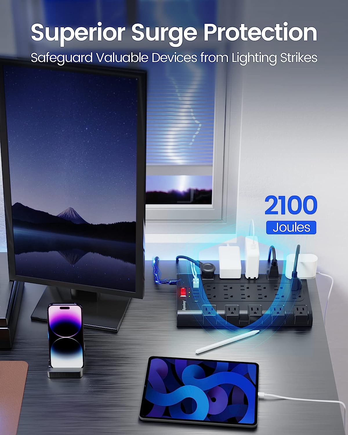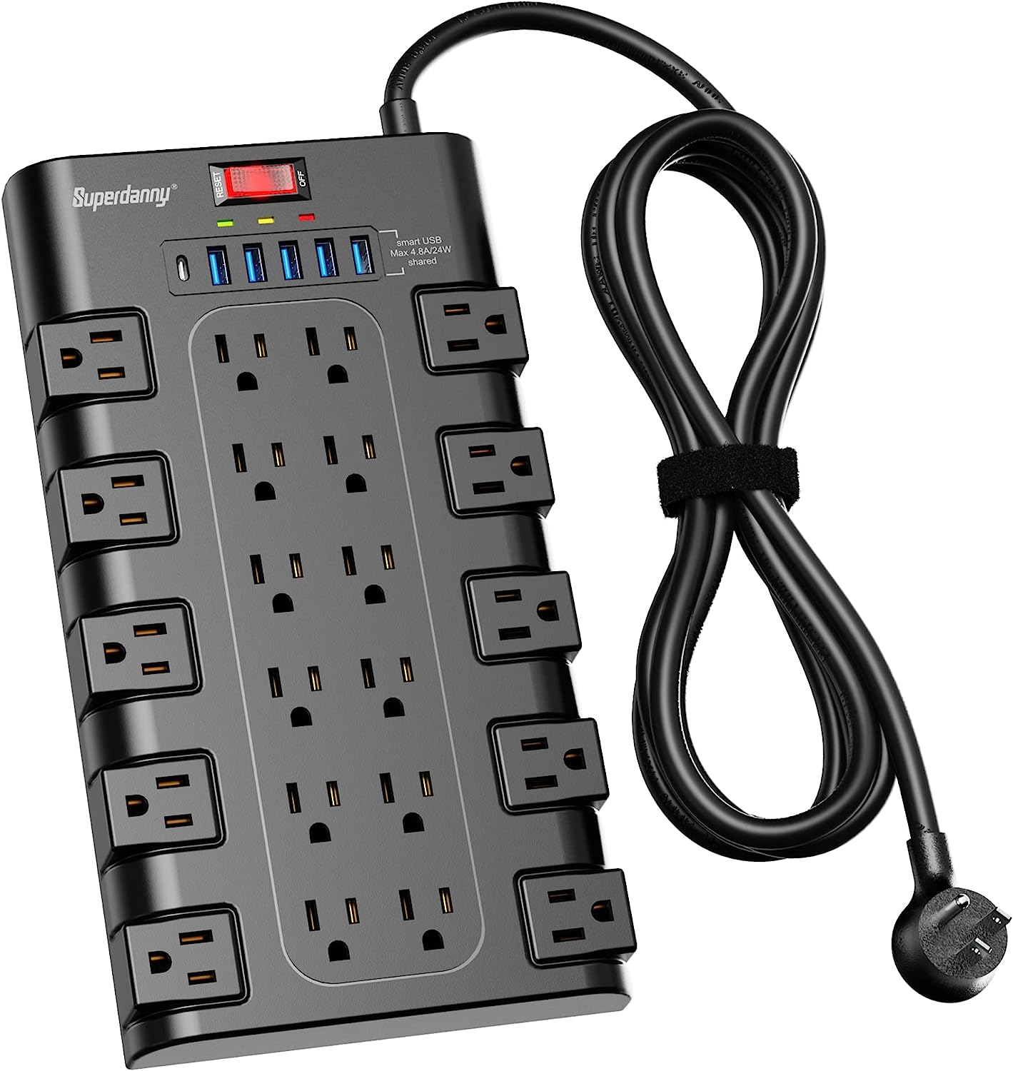 Power Strip Surge Protector - 22 AC Outlets & 6 USB Charging Ports (15A/2100 Joules)