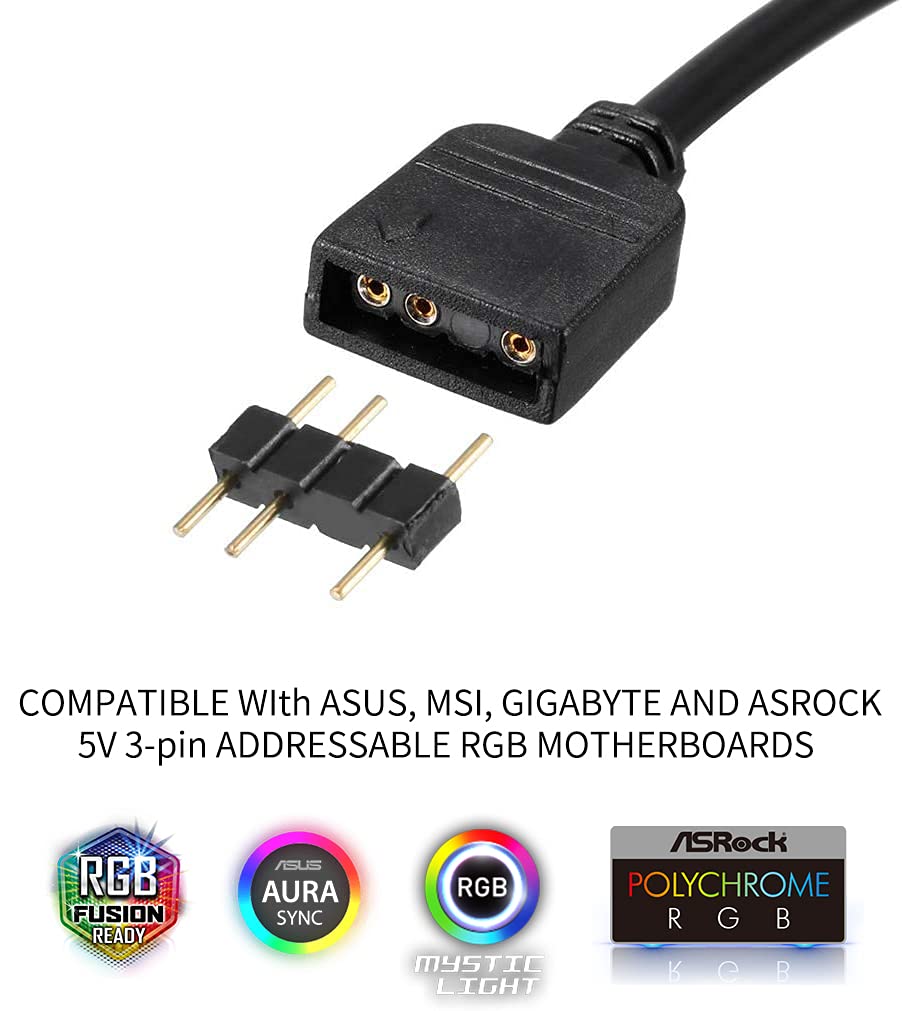 male pins. Compatible with ASUS, MSI, GIGABYTE and ASROCK addressable RGB