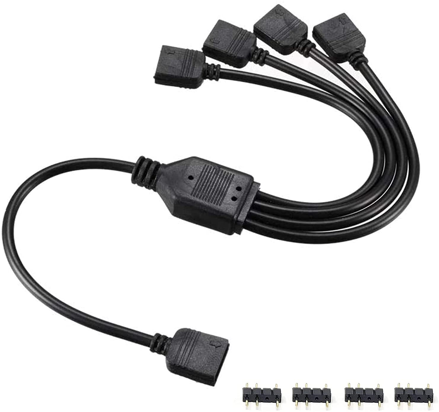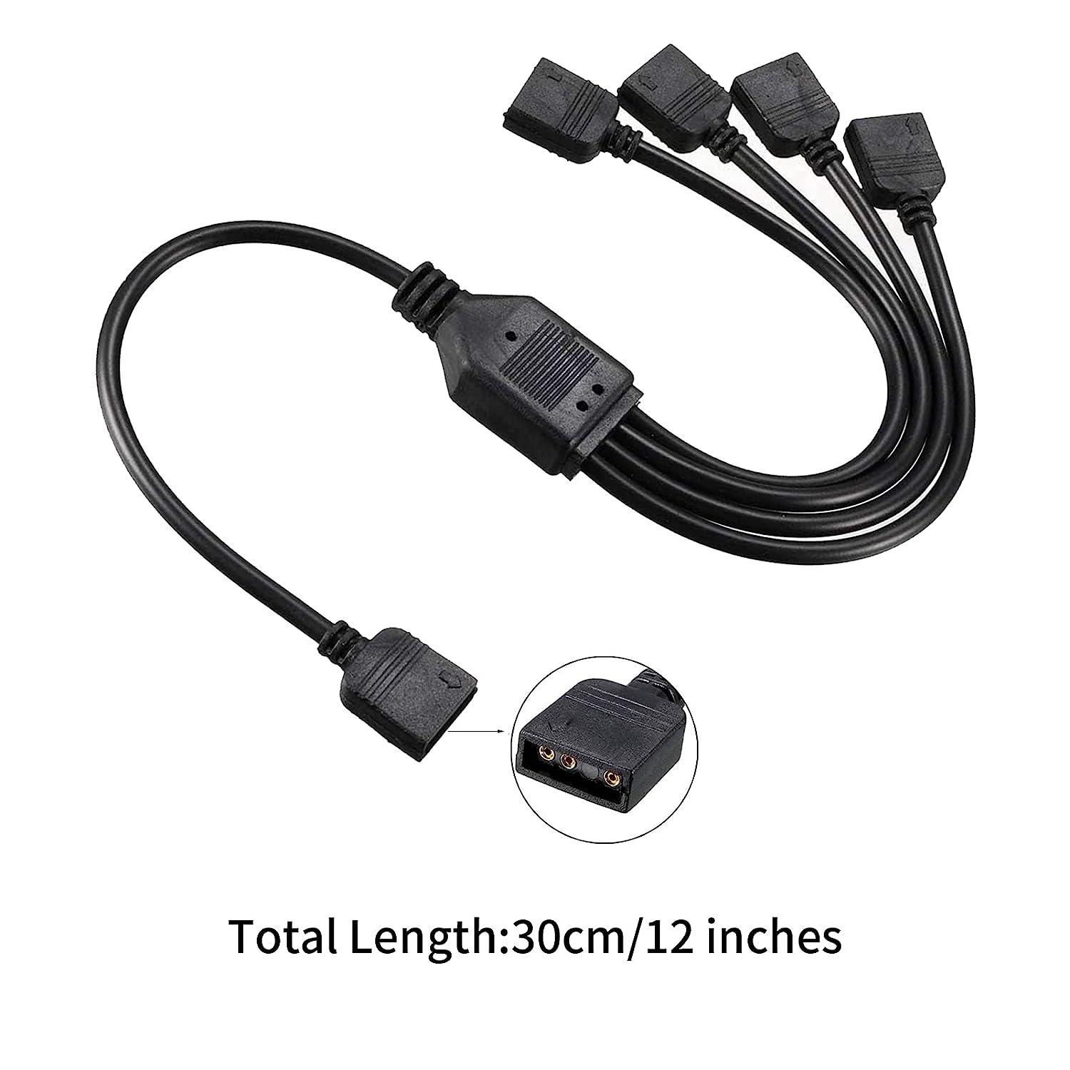 Novonest 5V 3Pin Addressable RGB 1 to 4 Splitter Cable, Y Shaped Fan & PC LED Strip Extension Cable
