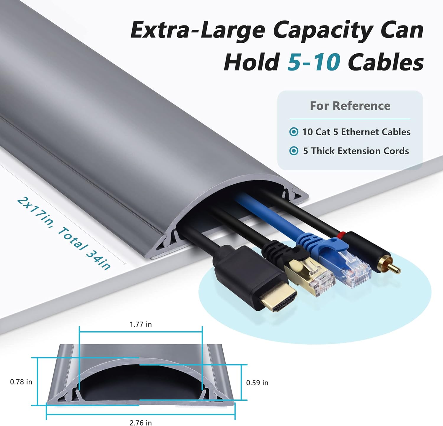 Floor Cord Cover: 2x17in, Total 34in; Smooth-cut Surface. Seamless connection.