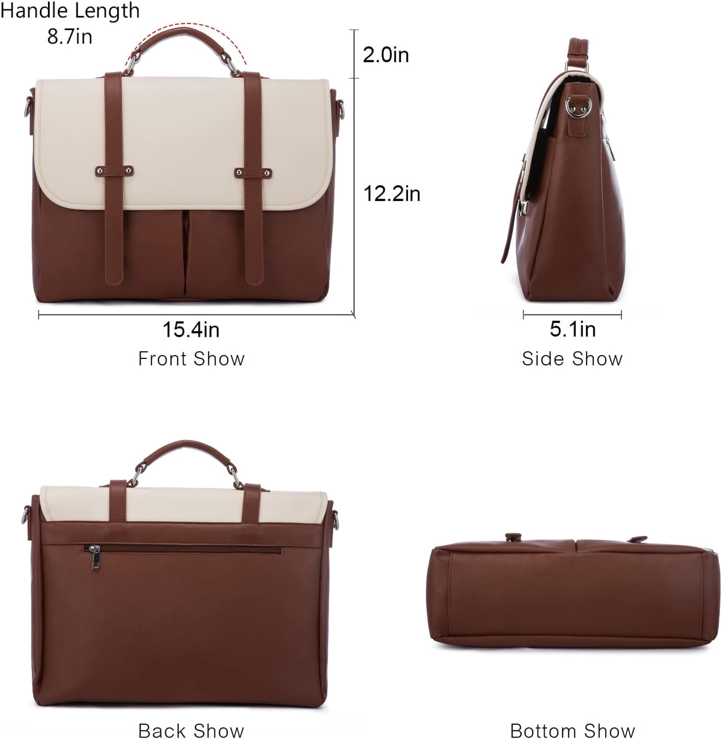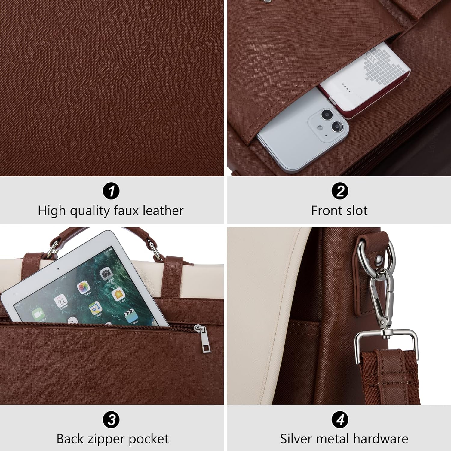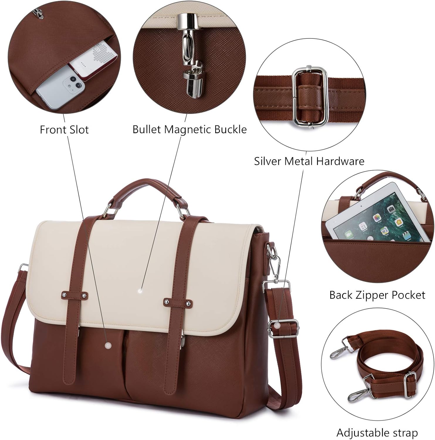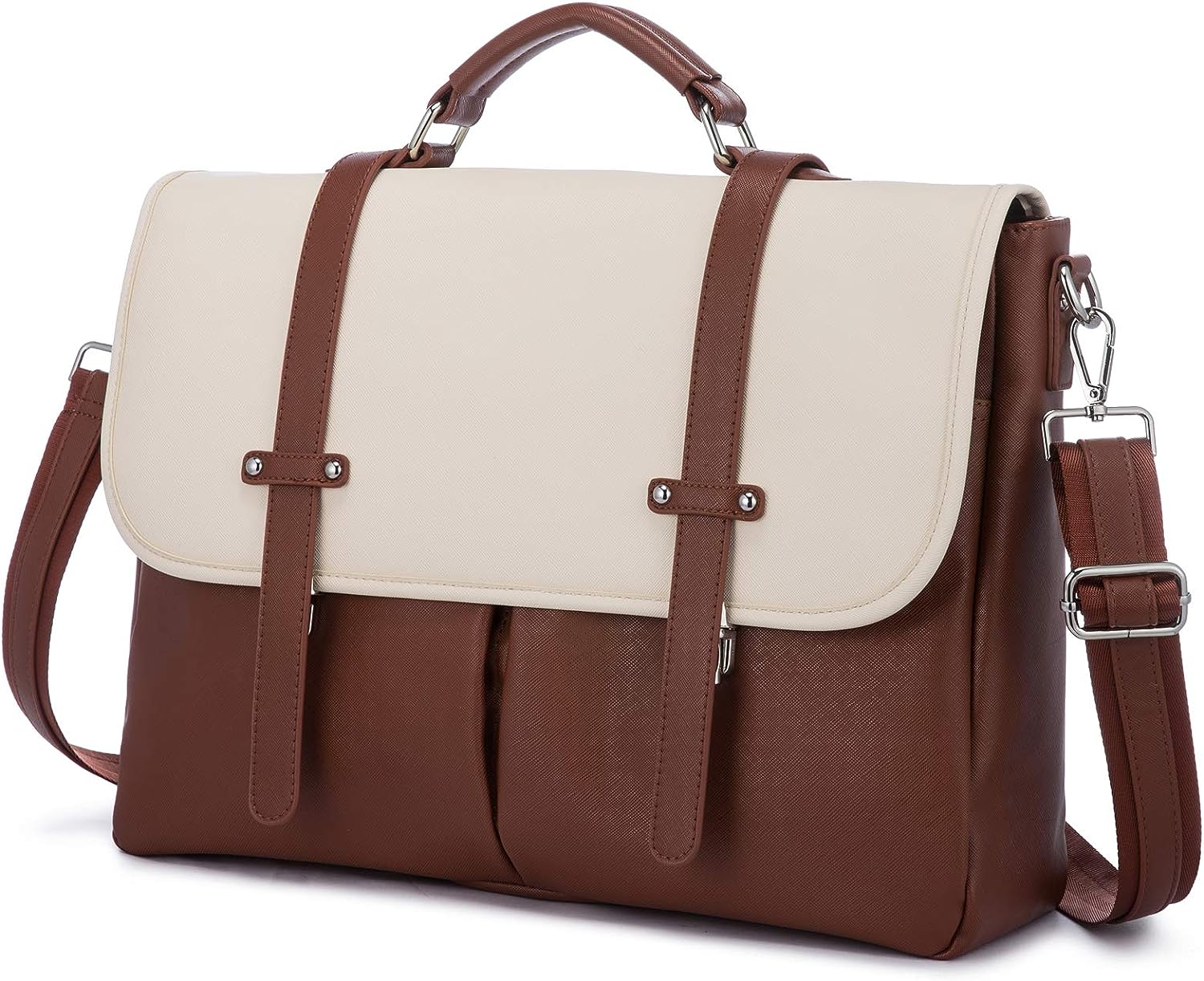 LOVEVOOK Laptop Backpack 15.6 Inch Shoulder Tote Bag - Brown & Cream