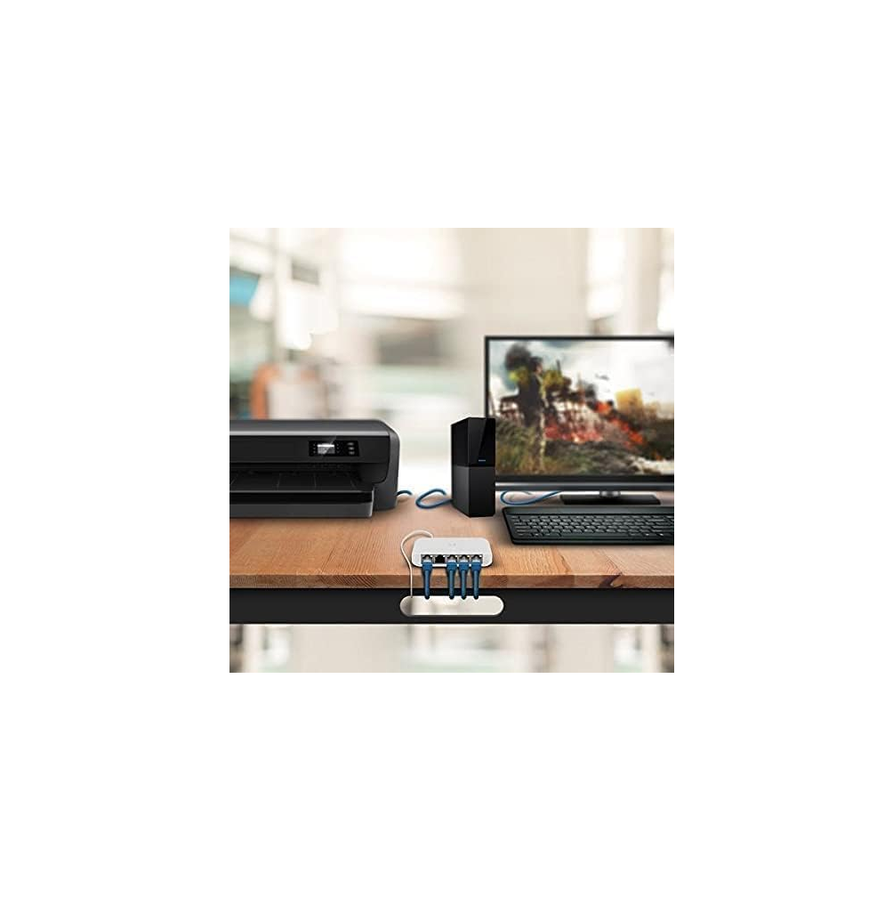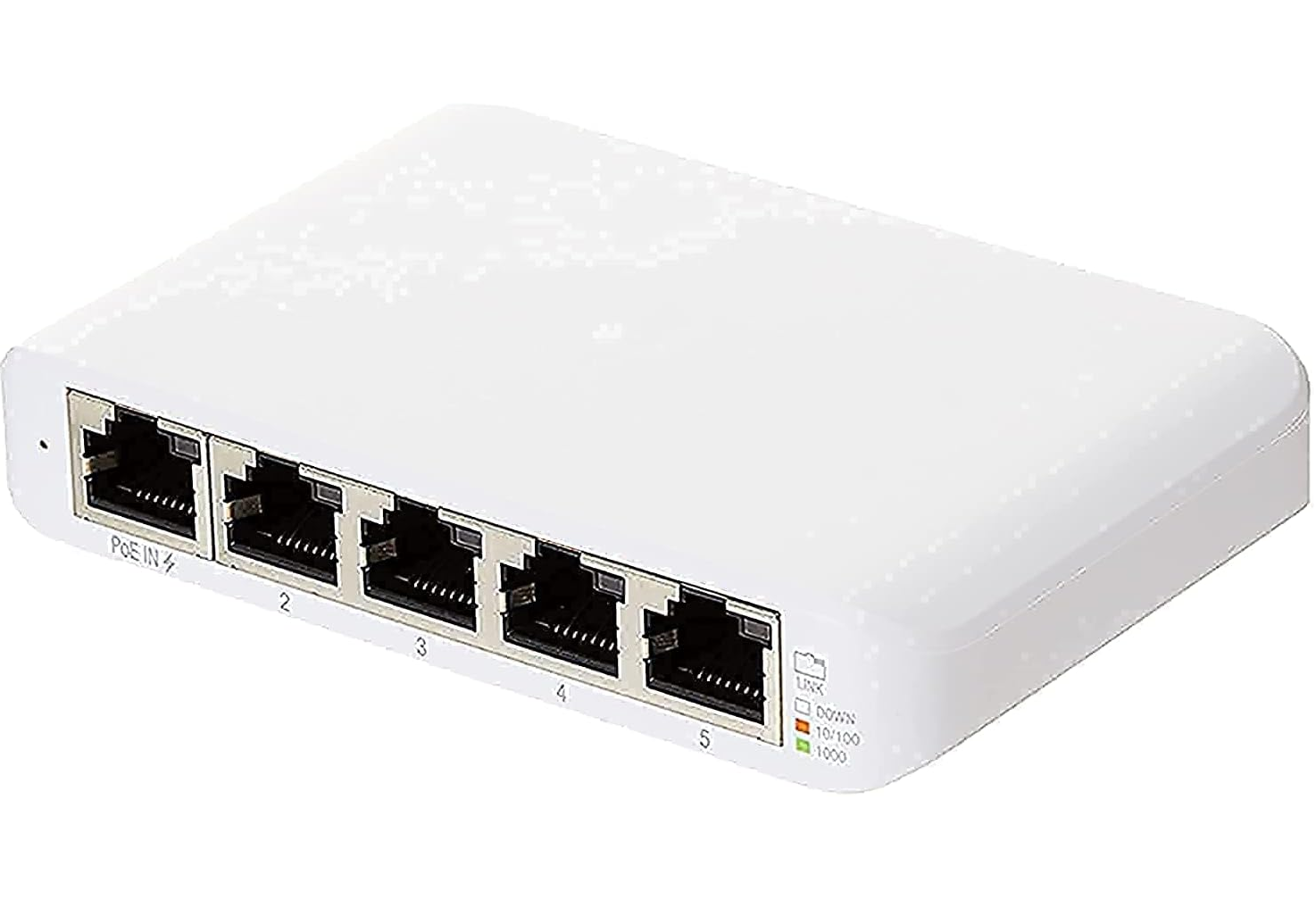Expand your network with the compact UniFi USW Flex Mini 5-Port Gigabit Managed Switch from Ubiquiti Networks. This 5-port fully managed router features five RJ45 Gigabit Ethernet ports that provide fast, wired connections to compatible devices, supporting a 10 Gb/s switching capacity and 7.44 Mpps forwarding rate. The Flex Mini can also be powered through its PoE-in port when connected to a compatible 802.3af/at device or using the included USB Type-C power adapter. With its small, fanless desktop design, the Flex Mini fits into almost any office, home, or business environment, where it operates silently. Use the UniFi Network Controller platform (version 5.12.5 or higher) to configure, manage, and monitor the switch and its connected devices.