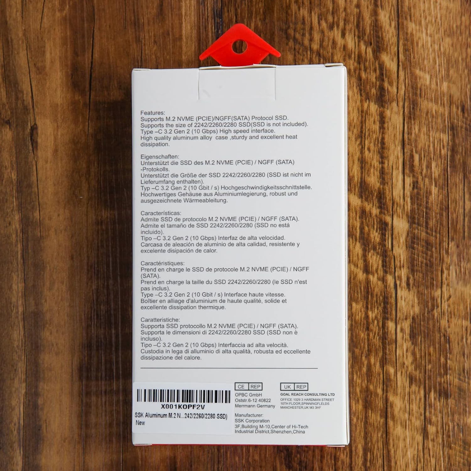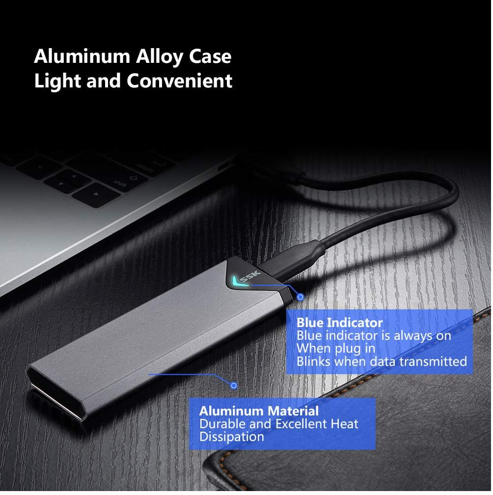SSK Aluminum M.2 NVME SATA SSD Enclosure Adapter - USB 3.2 Gen 2 (10 Gbps) to NVME PCI-E SATA M-Key (B+M)