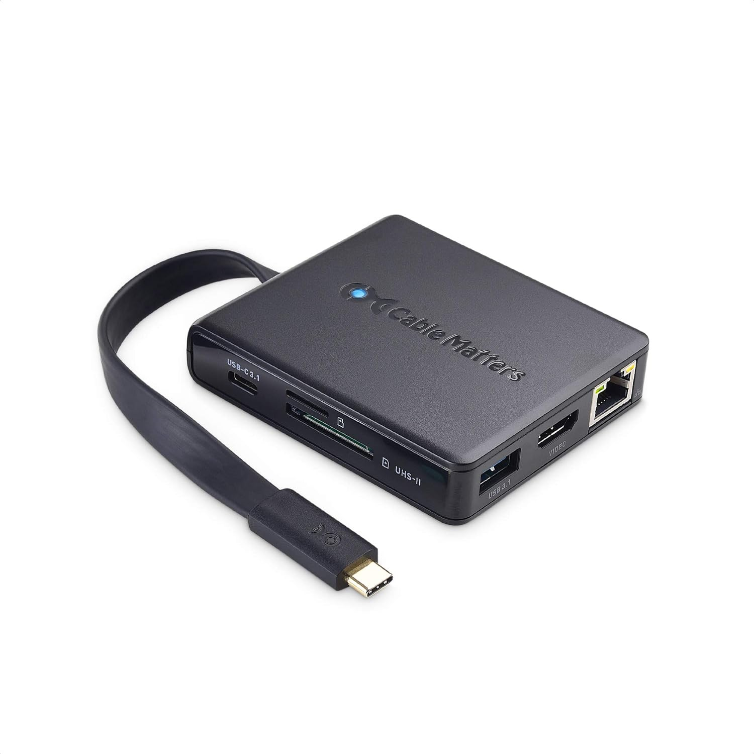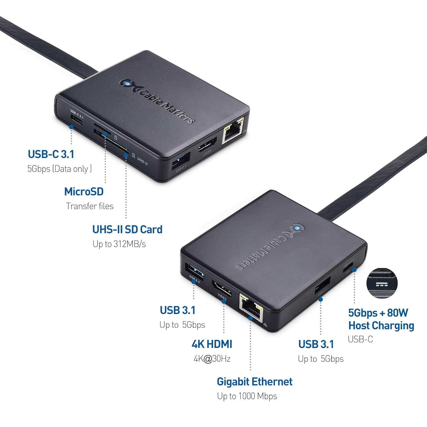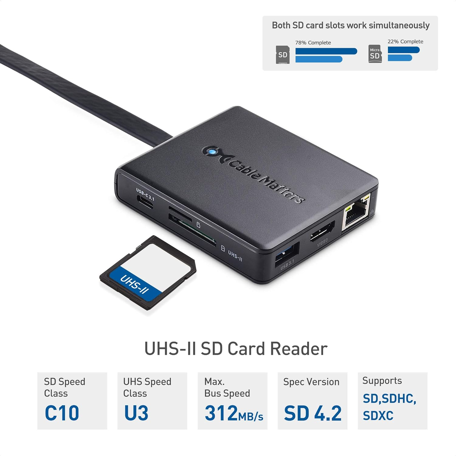 Cable Matters USB C Hub with 4K HDMI, 80W Charging, UHS-II Card Reader, 4X USB, and Gigabit Ethernet - USB-C and Thunderbolt 4 / USB4 / Thunderbolt 3 Port Compatible with MacBook Pro, Dell XPS