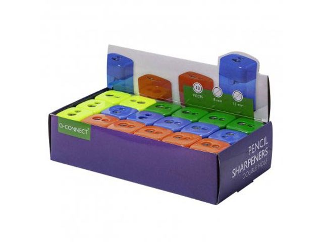 Q-Connect 2 Holes Plastic Pencil Sharpener - 1x (Assorted Colors)