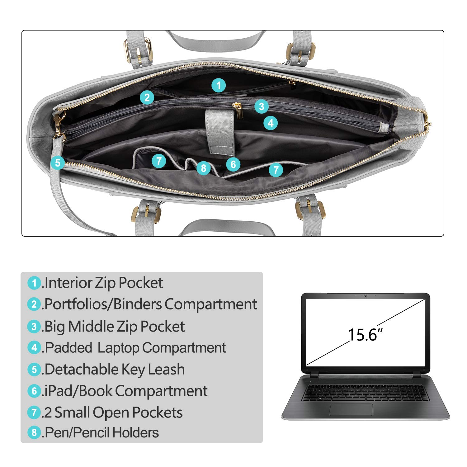 LOVEVOOK Laptop Bag for Women, Structured Leather Computer Bag, Professional Work Tote Purse, Teacher/Attorney’s Choice, Light-Grey