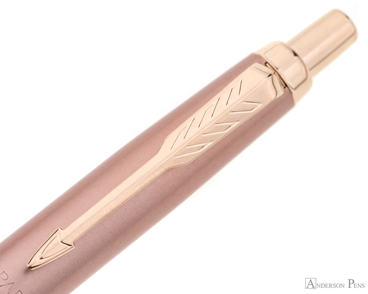 The Parker Jotter XL ballpoint was created for those writers who love the original Parker jotter but want something a little larger. At 7% bigger, the Parker Jotter XL ballpoint in Monochrome Pink Gold features a barrel, cap and trim that are all the same luxurious color . The refill extends and retracts by depressing the push-button mechanism on the top of the cap. The satisfying 'click' sound lets you know that the mechanism is engaged.