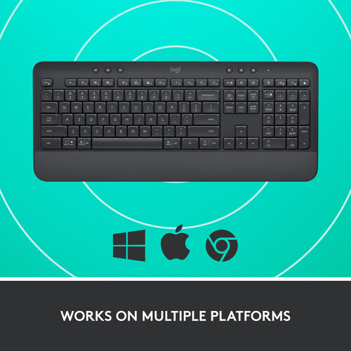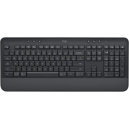 while enhancing your daily workflow with the graphite Signature K650 Wireless Keyboard from Logitech. Designed for high versatility, this full-size