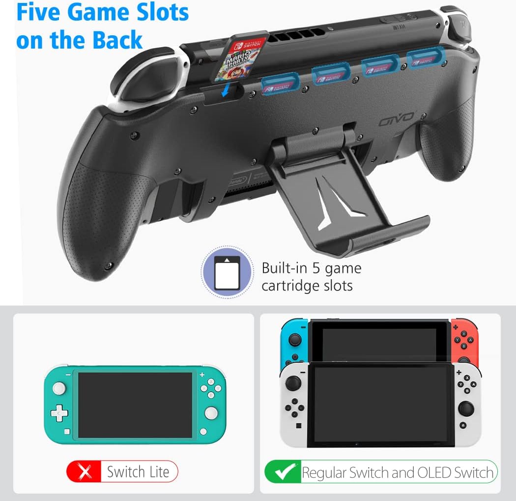 Switch Grip with Upgraded Adjustable Stand, Compatible with Nintendo Switch & OLED, OIVO Asymmetrical Grip with Adjustable Stand and 5 Game Slots-4 Thumb Caps Included