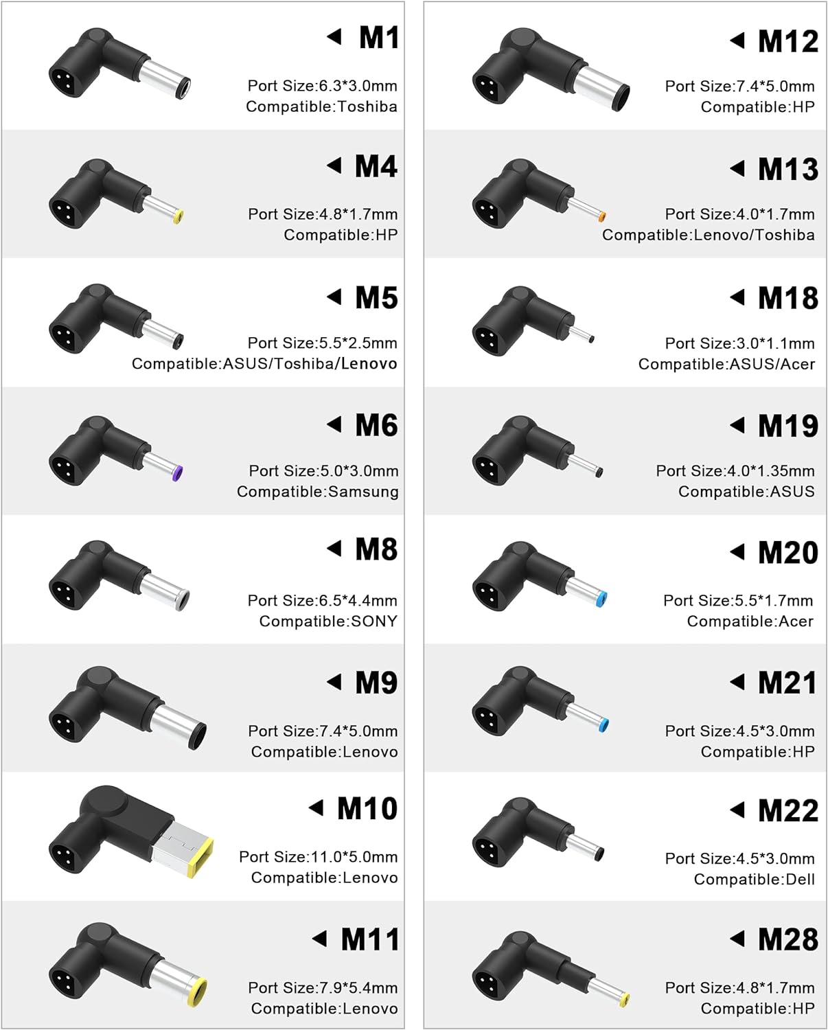 16V 19V 19.5V 20V,4.5A 90W,65W,45W.★Not compatible with devices’ voltage higher