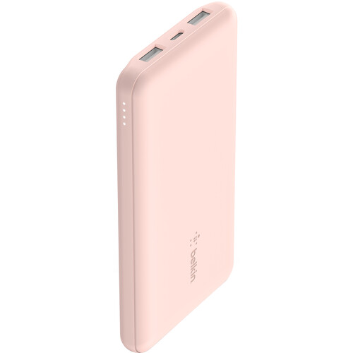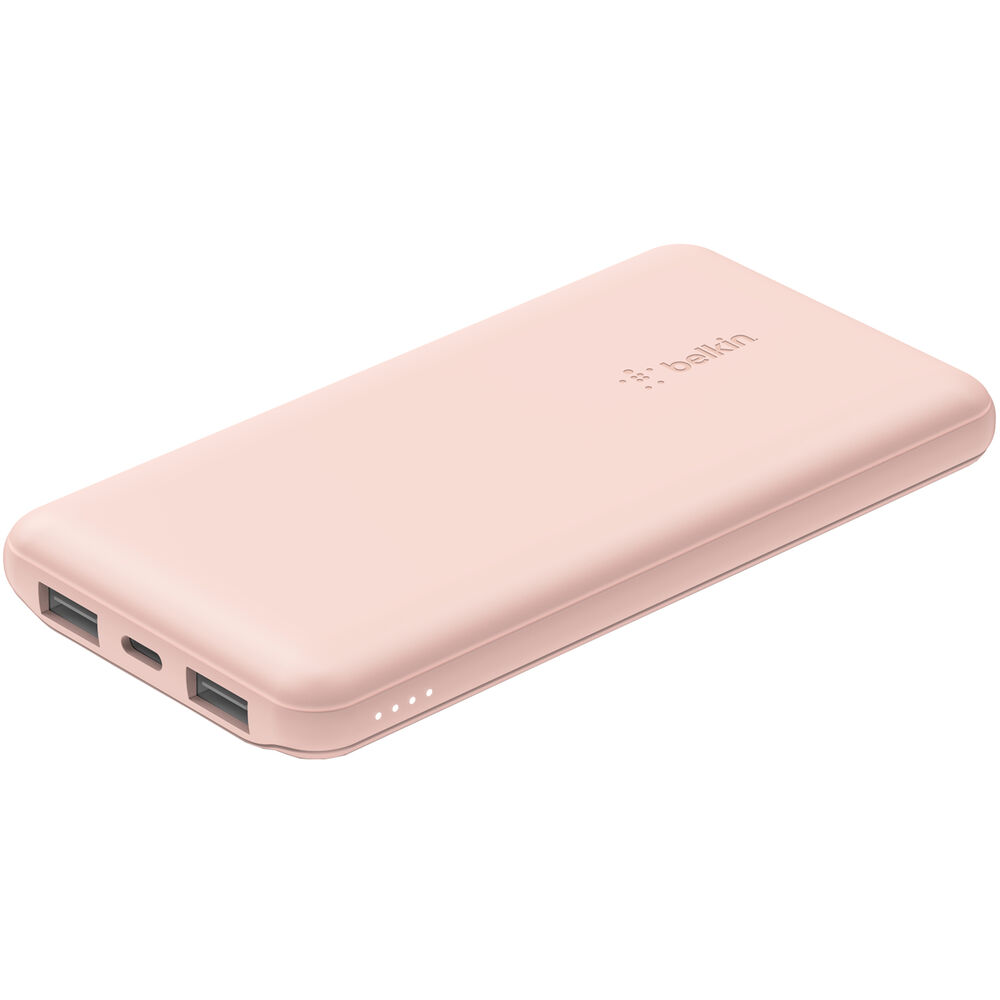 Charge three devices at one time with the 10,000mAh BoostCharge Power Bank in rose gold from Belkin. Featuring two USB-A outputs and a USB-C input/output, this 10,000mAh power bank delivers 15W of power when charging up to three devices, respectively. Compatible with tablets, phones, and more, it features a portable design, an LED indicator, and comes with a 6" USB-A to USB-C cable.