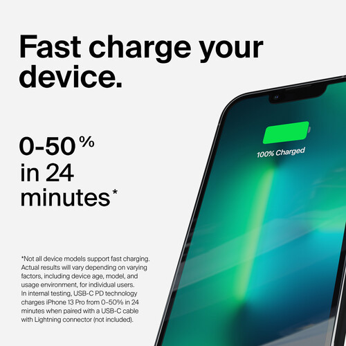 Ideal for both travel and your home, the BoostCharge USB-C PD 30W Wall Charger with USB-C Cable from Belkin features a fold-out plug on the back of the charger. This lets the BoostCharge sit flatter and closer to the wall. With a 2-prong design, you can orient it to have the single USB-C port on top or the bottom. Either way, you can more easily use it in tight spaces and behind furniture. The charger supports Power Delivery 3.0 for fast-charging mobile devices with up to 30W of power. PPS technology is also employed for safer charging, detecting the power requirements of the connected device.