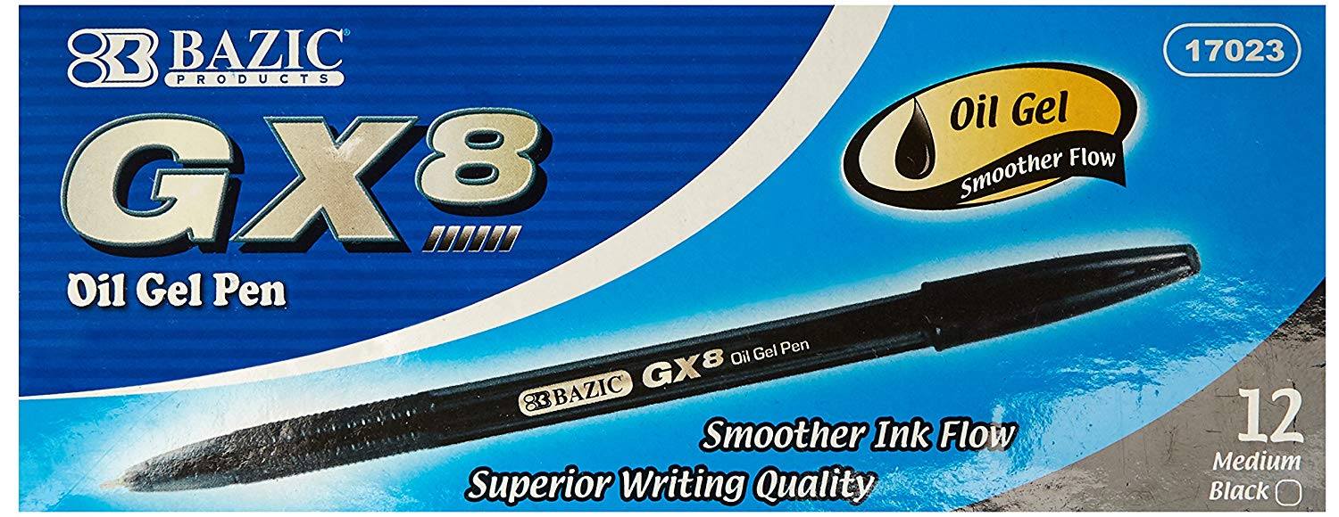 - GX-8 Black Oil-Gel Ink Pen, 12/Box