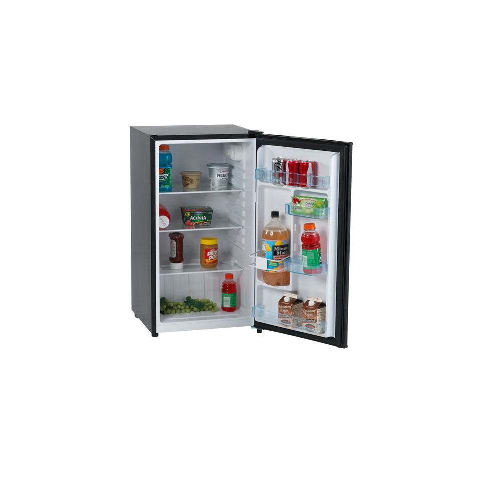 Keep your snacks and favorite beverages close by in the compact, 3.2 cubic foot black from Avanti. The perfect mini fridge for the office, dorm, man cave, she-shed, bar, bedroom, or anywhere you need a little extra refrigerator space. The door shelves have storage for a 2-liter bottle and space for drinks and condiments. Use the adjustable, removable shelving to arrange salads, fruits, snacks, and other foods for easy access throughout the day. This compact fridge features automatic defrost so your foods remain fresh and cold. Select the right settings for your items with the full range temperature control.