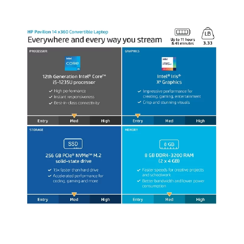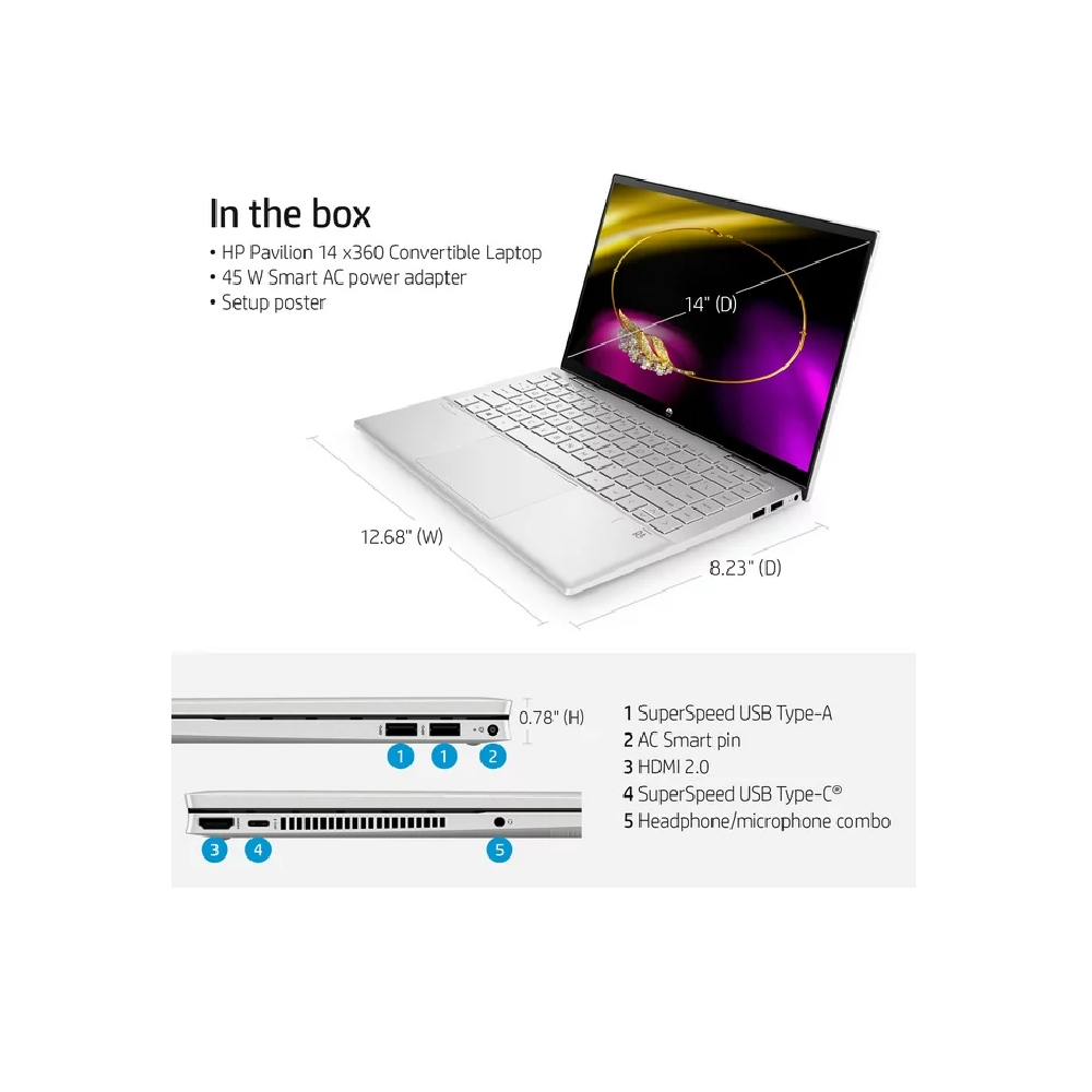 HP Pavilion x360 14" Full HD 2-in-1 Touchscreen Laptop - Intel Core i5 8GB 256GB - Windows 11 Home