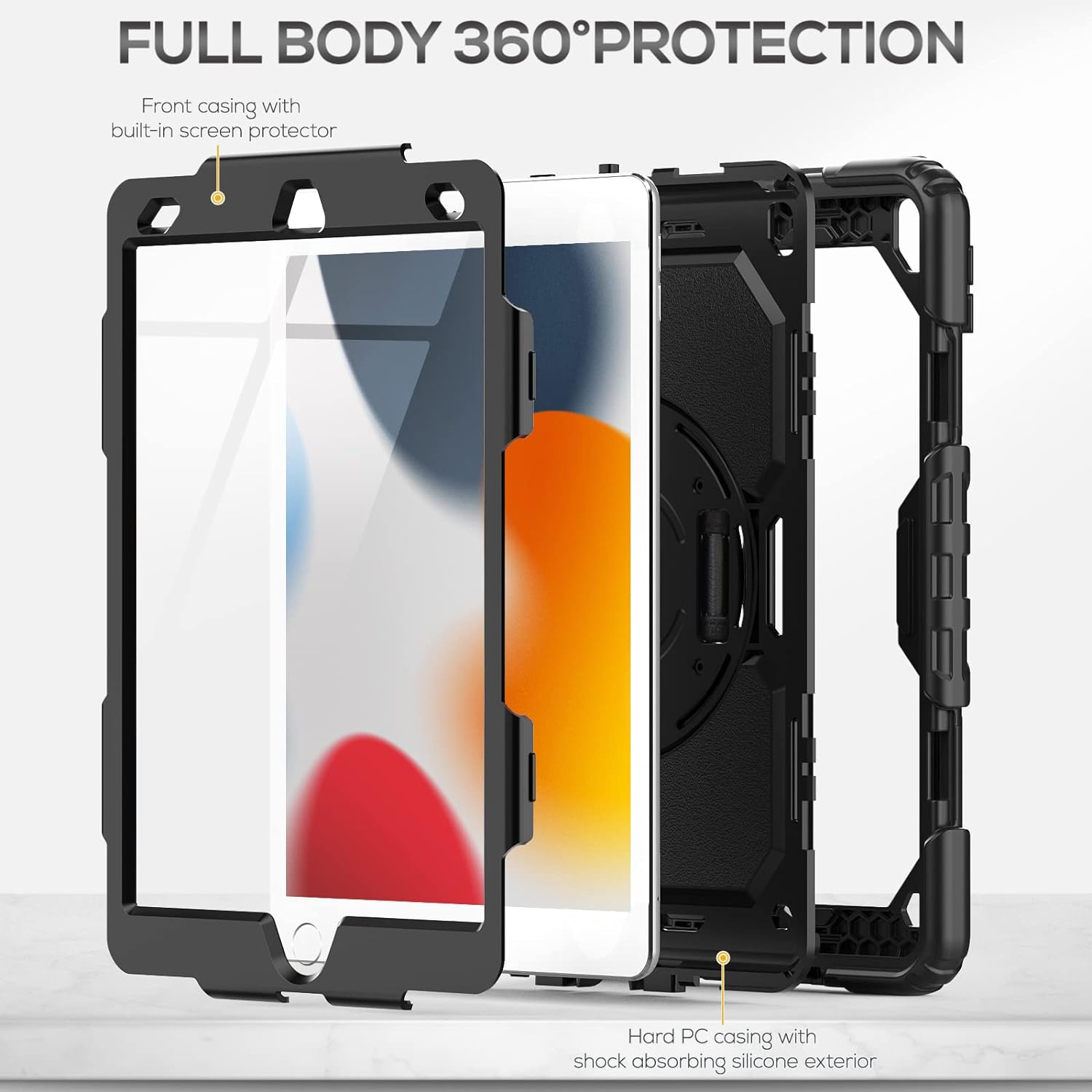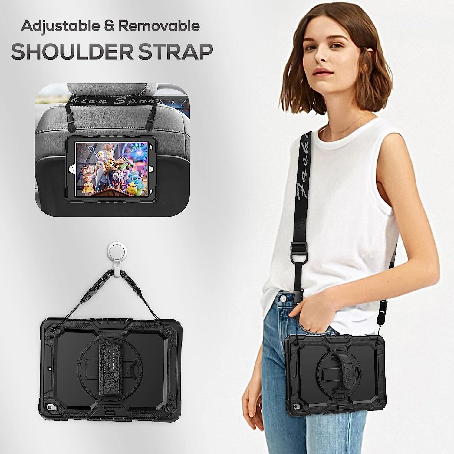 SEYMAC iPad 7/8/9th Generation Case 10.2" (2019/2020/2021) - Full-Body Heavy Duty Protective Case, Screen Protector, Handle & Shoulder Strap