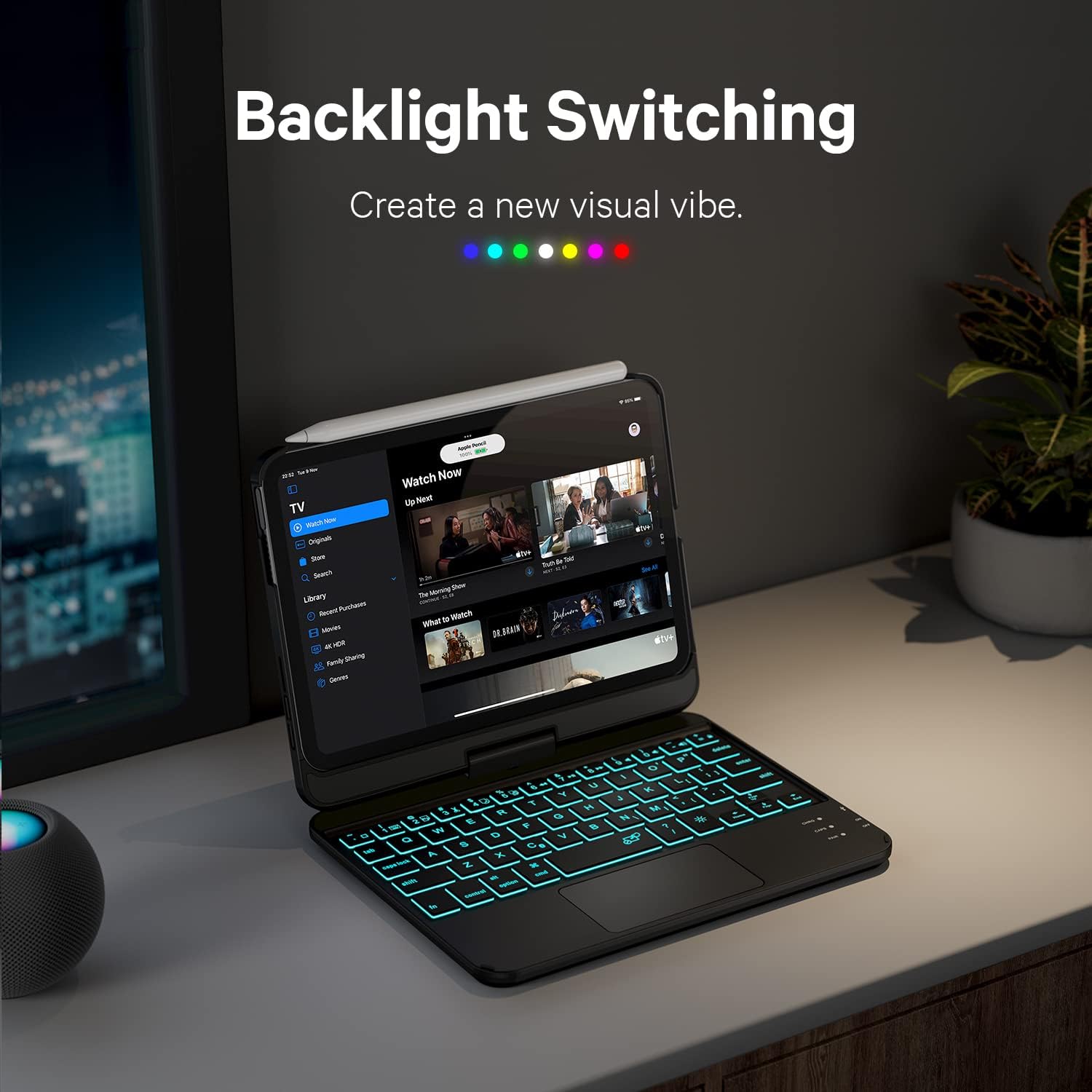 iPad Mini 6 (6th Gen) 8.3" Case with Keyboard - 7 Color Backlit - Black