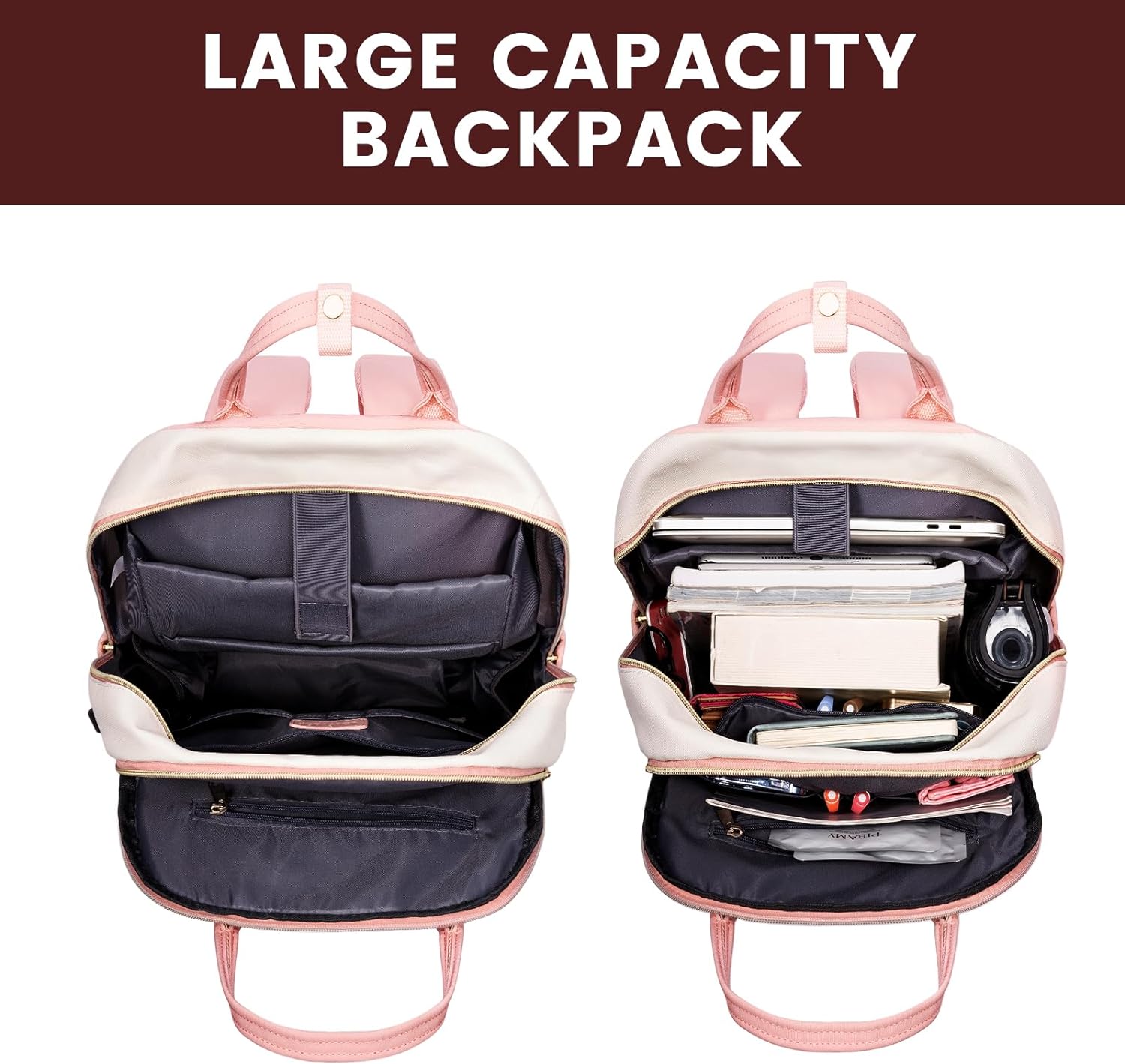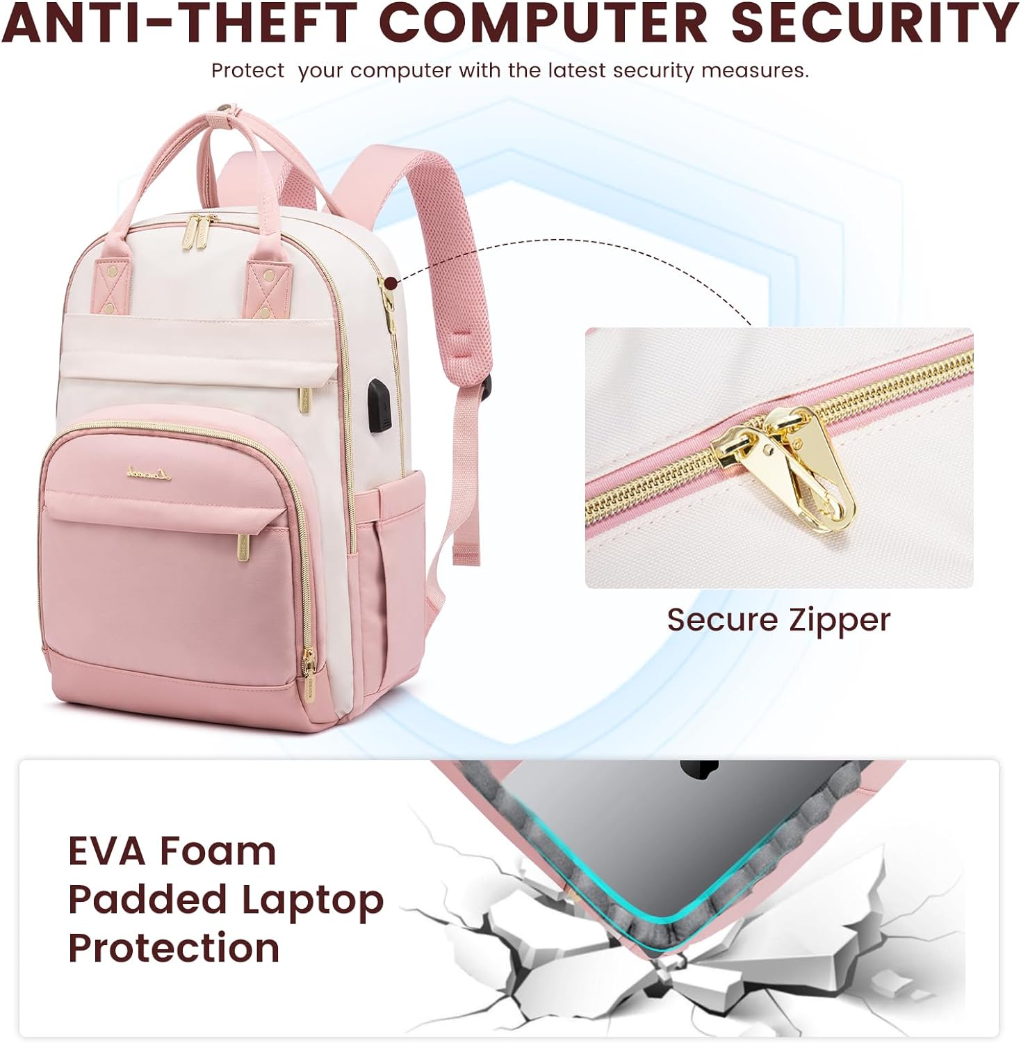 LOVEVOOK Laptop Backpack 15.6 Inch With USB Charging Port - Beige & Pink